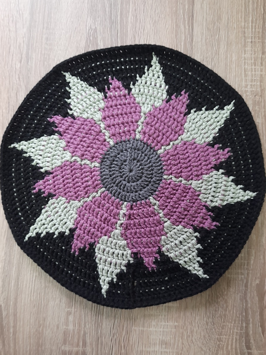 Давным давно хотела я связать 2 парные сидушки на табурет, да всё никак. И вот добралась я до пряжи и крючка, добралась до цветка и понеслась вязать. Думала, свяжу круг, затем превращу его в квадрат и так 2 раза😁, да не тут-то было... пряжа оливковая закончилась. И снова я вначале задумки связать 2 парные сидушки. А что это такое получилось и где его место, пока не знаю. То ли миниковрик, то ли отъевшаяся салфетка😁. Главное, что получилось симпатично, ну и на этом уже хорошо. Теперь я снова в поиске узора для сидушек, а также надо с пряжей не просчитаться в следующий раз, а то не видать табуретам пары😊