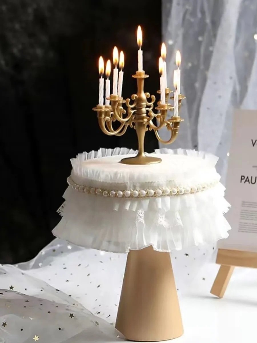 Этот элегантный подсвечник способен превратить даже самый простой торт в произведение кондитерского искусства. Он выполнен с таким вкусом и вниманием к деталям, что сразу создаёт ощущение праздника. Его изящный дизайн не перетягивает внимание на себя, а гармонично дополняет десерт, добавляя сервировке нотку торжественности и завершённости.