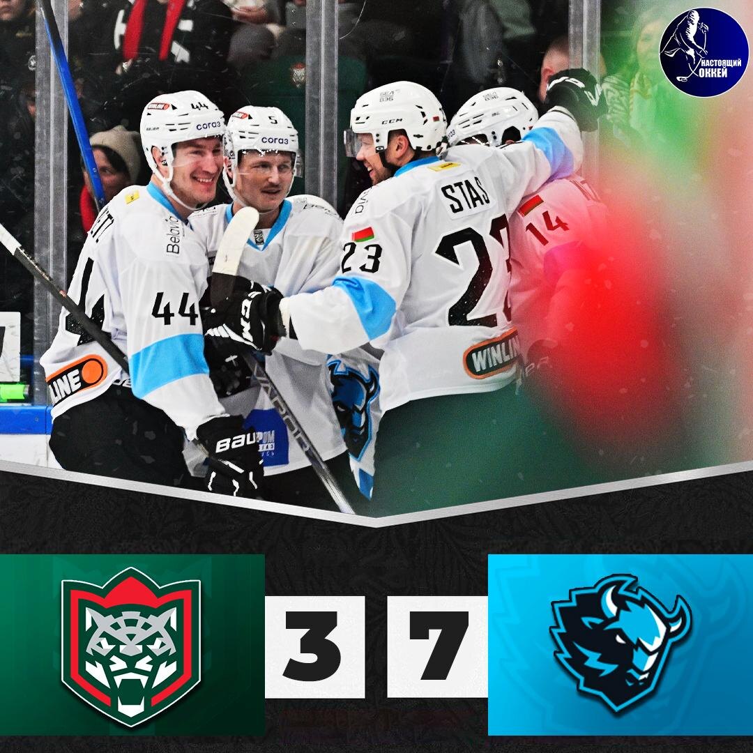 ⚡️🦬 Минское «Динамо» забросило «Ак Барсу» семь шайб и одержало победу в Казани