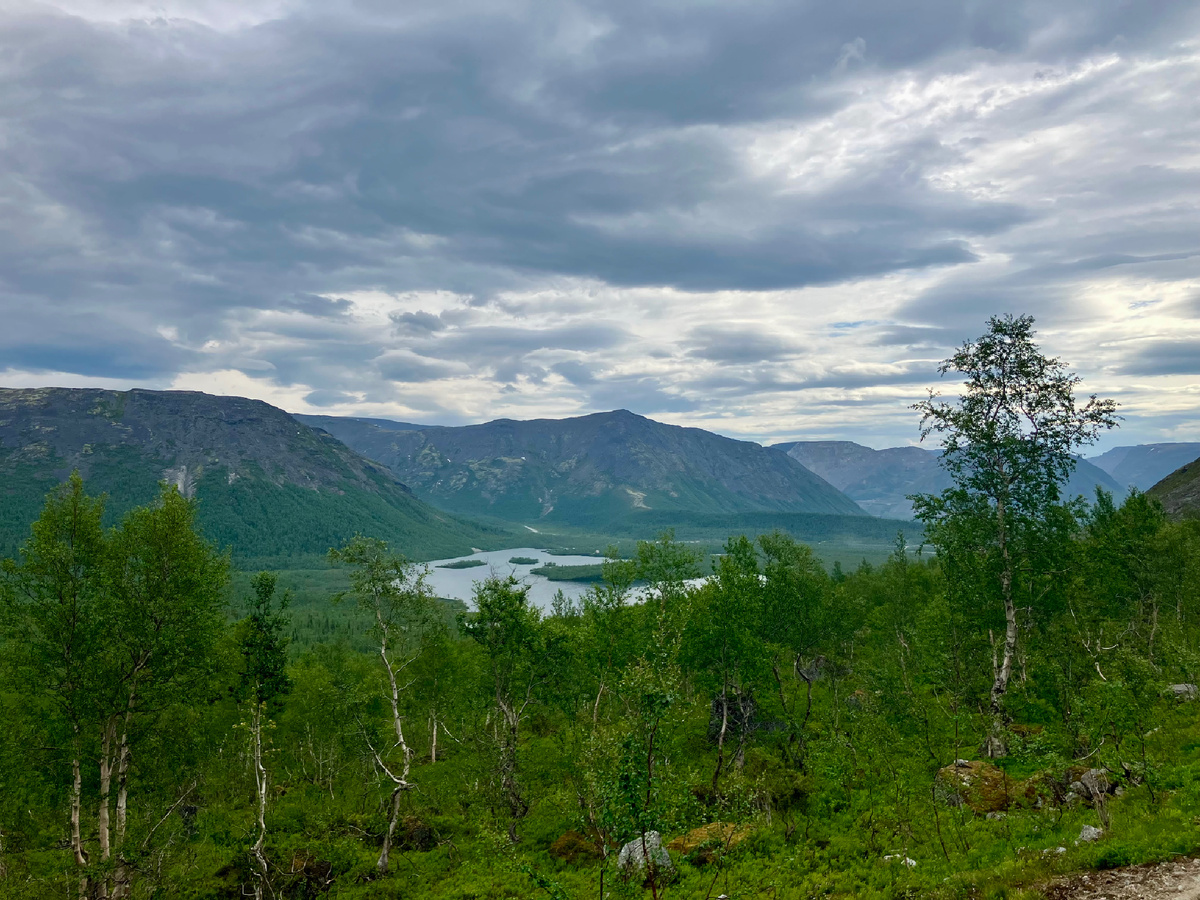 Далее предстоял подъем по отрогу горы Вудъяврчорр к перевалу. Но сначала мы дошли до небольшого горного озера, у которого нет названия на карте, поэтому оно у нас получило имя Безымянное. Очередное фантастическое место, чистейшее озеро, укрытое каменным цирком от посторонних глаз.