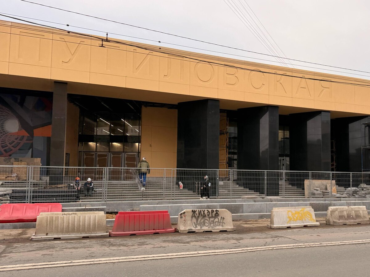 Завершаются фасадные работы в вестибюле станции «Путиловская»