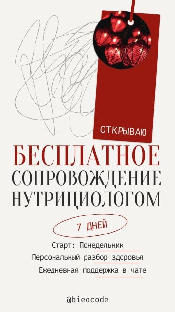 🚀 Только для моих подписчиков БЕСПЛАТНАЯ НЕДЕЛЯ сопровождения командой нутрициологов 🔥 ДЕТОКС ДЛЯ ЗАНЯТЫХ: 7 ДНЕЙ ЗАБОТЫ О ВАС БЕСПЛАТНО Знакомо чувство, когда просыпаешься уже уставшей? Когда энергии не хватает на день, а про спортивную форму остались только воспоминания? Что ждет вас: • Персональный разбор вашего состояния и анализов • Индивидуальные рекомендации по питанию и БАДам • Ежедневная поддержка куратора в чате • Готовый план действий на следующие 3 месяца 🎁 Что получите за 7 дней: ✓ Энергию с утра до вечера ✓ Улучшение качества сна ✓ Снижение отечности ✓ Четкий план дальнейших действий Успйте подать заявку: всего 7 мест в группе Старт: в понедельник 👉 Успейте забронировать место