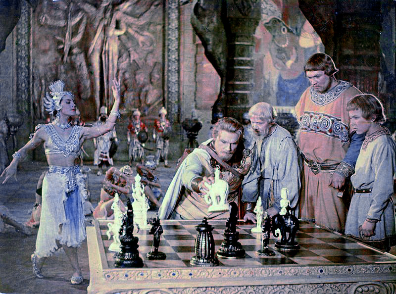 Садко. СССР, 1953. Режиссер Александр Птушко. Сценарист Константин Исаев. Актеры: Сергей Столяров, Алла Ларионова, Михаил Трояновский, Надир Малишевский, Борис Суровцев, Юрий Леонидов, Иван Переверзев, Николай Крючков, Сергей Мартинсон, Михаил Астангов, Ольга Викландт, Нинель Мышкова, Лидия Вертинская и др. 27,3 млн. зрителей за первый год демонстрации. Знаменитый киносказочник Александр Птушко (1900-1973) поставил 12 полнометражных игровых фильмов, восемь из которых («Каменный цветок», «Садко», «Илья Муромец», «Сампо», «Алые паруса», «Вий», «Сказка о царе Салтане», «Руслан и Людмила») вошли в тысячу самых кассовых советских кинолент. Успех волшебной киносказки «Садко» был настолько впечатляющим, что в 1962 году в Америке не поленились её перемонтировать, переозвучить и выпустить на экран под названием «Волшебное путешествие Синдбада» (The Magic Voyage of Sinbad). Голливуд постарался избавиться в фильме от всех русских названий, а Садко превратился в Синдбада… Отзывы сегодняшних зрител