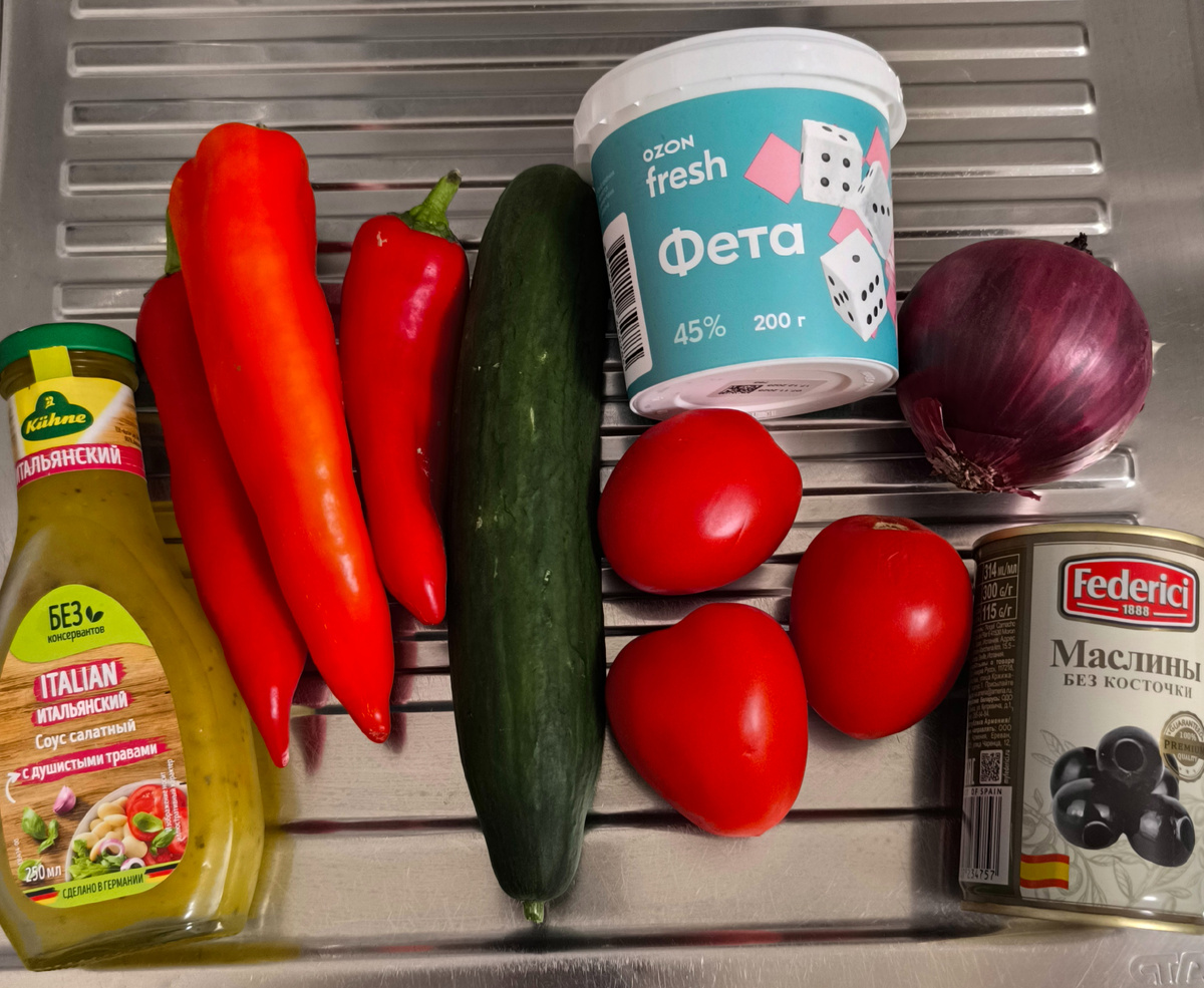 Сегодня готовим не просто салат - а кусочек солнечной Греции на вашей тарелке. И да, мы обойдёмся без загранпаспорта и перелёта! Наш секретный ингредиент - готовая заправка от Kühne, которая творит чудеса. - огурцы 1-2 штуки (ищите такие, чтобы хрустели, как новая купюра); - помидоры 2–3 штуки (спелые, но не "уже почти сок"); - красный лук 1 головка (чтобы добавить пикантности, но не довести до слёз); - болгарский перец (лучше Рамиро, он вкуснее и сочнее) 1-2 штуки; - оливки 10–12 штук (без косточек, чтобы не искать их в зубах после ужина); сыр фета 200 грамм (лучше брать сразу нарезанный, так проще); заправка Kühne - по вкусу (примерно 2-3 столовые ложки на порцию, но кто считает?). Пошаговая инструкция (с юмором, как мы любим) 1. Подготовка овощей: битва за идеальную нарезку Огурцы - крупными полукругами. Представьте, что вы скульптор, а огурец - мрамор. Только не переусердствуйте, а то получится салат из опилок. Помидоры - дольками. Не мельчите! Они должны чувствовать себя королям