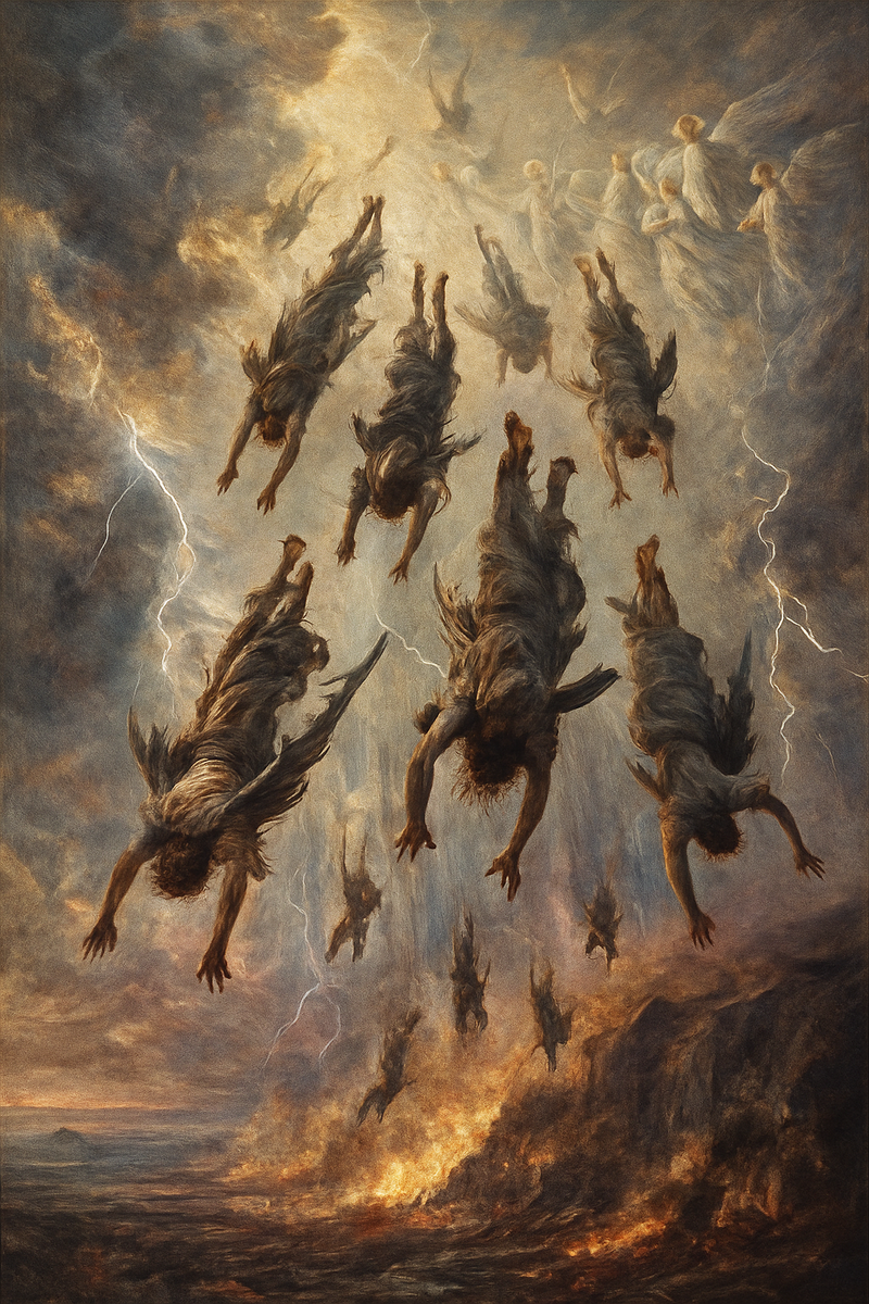 Что такое «падшие ангелы» (основная идея) ПАДШИЕ АНГЕЛЫ — это ангельские существа, которые, по библейской и религиозно-традиционной ретроспективе, совершили грех против Бога и были низвергнуты или отлучены от общего Божественного порядка; в христианской традиции они отождествляются с «дьяволом» и его демонами (или «сатаной и его ангелами»). Это положение отражено в учении Катехизиса Католической Церкви: падение ангелов — реальный, свободный и окончательный выбор восстать против Бога. Главные библейские тексты, которые связаны с идеей падших ангелов Ревеляция 12:7–9 — образ «войны на небе», где дракон (названный дьяволом, Сатаной) и «его ангелы» побеждены и сброшены на землю; это главное новозаветное место, на которое опираются представления о падении ангелов. Бытие 6:1–4 — загадочный пассаж о «сынах Божьих» и «сынах людей» (и о «нефилимах»). Некоторые древние интерпретации читают «сыны Божьи» как ангелов, сошедших на землю Текст сам по себе в Библии, остаётся предметом разных толкован