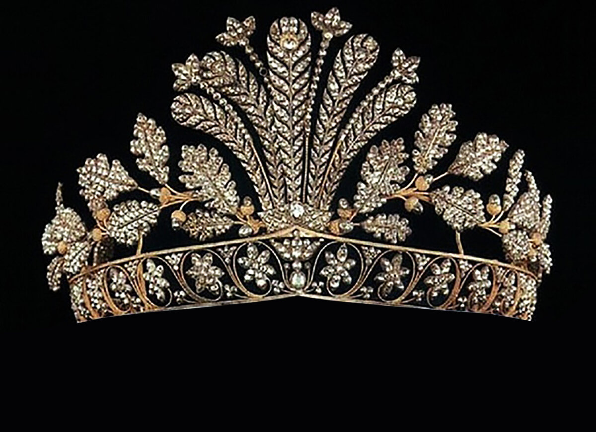 Например, эта тиара, выполненная в виде изящного растительного орнамента, кажется сотканной не из металла, а из солнечных лучей.