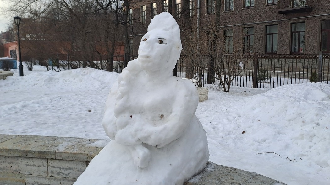 Горожане радуются зимним скульптурам, несмотря на скорое потепление