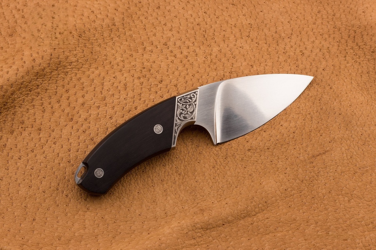 Архивариус Заметки коллекционера В мире, где всё подчинено функциональности, где мы гонимся за суперсталями и тактическим фетишем, мы рискуем упустить нечто главное. Красоту. Ту самую, что не кричит, а шепчет. Ту, что превращает простой инструмент в предмет созерцания. Именно такой шепчущей красотой оказался в моих руках этот нож для снятия шкуры с мелкой дичи — творение, где эстетика не приправлена, а является самой сутью. Его габариты скромны, почти миниатюрны, как у хорошего перочинного ножа: Но в этой миниатюрности — не слабость, а концентрация. Как крепкий бренди, что пьют не стаканами, а глотками, наслаждаясь каждым оттенком вкуса. Сталь Böhler N695 — выбор не сенсационный, но безоговорочно правильный. Это как верный слуга в благородном доме: не блещет на показ, но знает своё дело идеально. Твёрдость в 57 HRC — золотая середина, позволяющая лезвию быть стойким, но не хрупким в жестоких объятиях кости. Форма — классический скиннер. Его изгиб не просто красив — он анатомичен. Он со