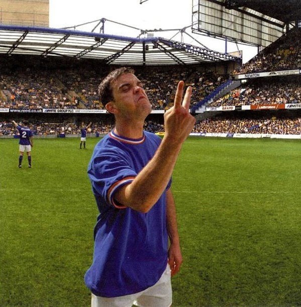 Робби Уильямс и его крутейшее промо к альбому Sing When You're Winning Или в переводе на наш - "Пой, когда побеждаешь". Это третий альбом Робби и название такое имеет в честь британской футбольной кричалки, написанной на мотив кубинской песни Guantanamera. Кричалка в основном и состоит из этой строчки - Sing When You're Winning. Ну а то, что Уильямс фанат футбола - думаем не секрет. Плюс он записал песню «It's Only Us» в качестве темы для видеоигры FIFA 2000, причём бесплатно. Но в рамках соглашения о лицензировании трека EA Sports включила в игру «Порт Вейл», футбольный клуб, который поддерживает Уильямс, несмотря на то, что он находился только в третьем дивизионе (тогда в игре были только высшие лиги). Кстати, в прошлом году Робби даже стал Почетным президентом этого клуба! ⚽️ Подписывайтесь на нас в MAX
