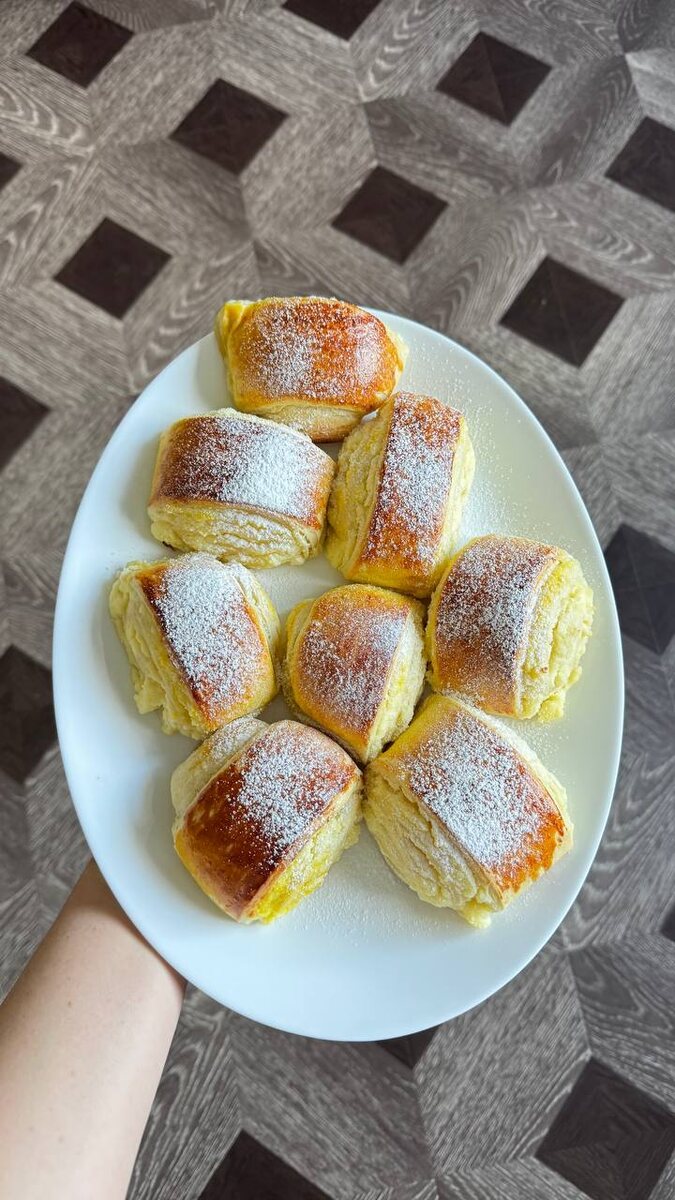 Творожные булочки 〰️〰️〰️〰️〰️〰️〰️ Творог - 460 гр Сахар - 6-7 ст.л Ванильный сахар - 1 пакетик Крахмал - 2 ст.л Яйцо - 2 шт Слоеное тесто - 400 гр Сах.пудра для посыпки 〰️〰️〰️〰️〰️〰️〰️ Тесто размораживаем. Слегка раскатываем. Смешиваем творог, Сахар, ванильный Сахар, крахмал и 1 яйцо +белок (желток оставить для смазывания). Наносим творожную массу на тесто. Сворачиваем рулет и разрезаем на кусочки толщиной примерно 5 см. Можно больше. Выкладываем на пергамент, смазываем желтком и выпекаем в духовке 25-30 минут при 180 градусах. При подаче посыпать сахарной пудрой. ⚪️⚪️⚪️⚪️⚪️⚪️⚪️⚪️⚪️ ⚪️⚪️⚪️⚪️⚪️⚪️⚪️⚪️🍃 ➖сохраняйте рецепт ➖давайте обратную связь ➖делитесь каналом с подругой Домохозяйка в сети #dm_к_чаю