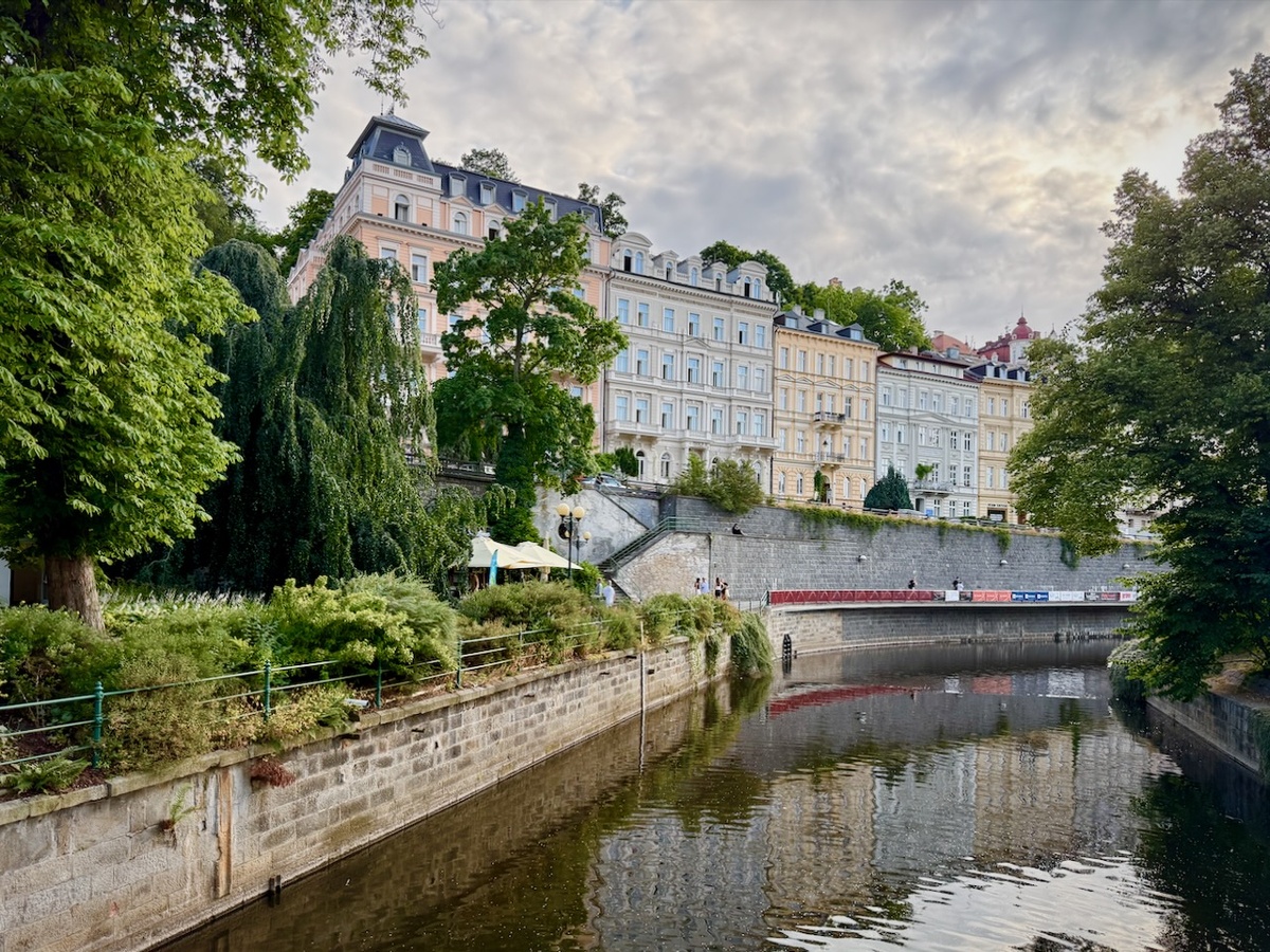 Решение съездить в Карловы Вары пришло спонтанно. Мы с супругой там уже были – в свою первую поездку в 2004 году, когда мы приезжали в Чехию на неделю по экскурсионной программе. Но честно говоря, с того времени столько всего произошло, что мы решили посмотреть, как сейчас живет город - ведь многие прочили ему забвение без русских туристов. Плюс сейчас с нами были дети, а они в Карловах Варах не были. Самым удобным (дешевым и быстрым) видом транспорта оказался автобус, билеты купили заранее онлайн – утром туда, вечером обратно, и через два часа мы уже топали от автобусной станции к отелю Termal, где мы планировали поплавать в бассейне с минеральной водой. Второе знакомство с городом началось у нас именно так – в теплых водах термы с красивыми видами на Карловы Вары. Конечно же все знают, чем знамениты Карловы Вары –минеральными источниками, обладающими целебными свойствами. По легенде император Священной Римской империи Карл IV, охотясь в здешних лесах, случайно наткнулся на бивший