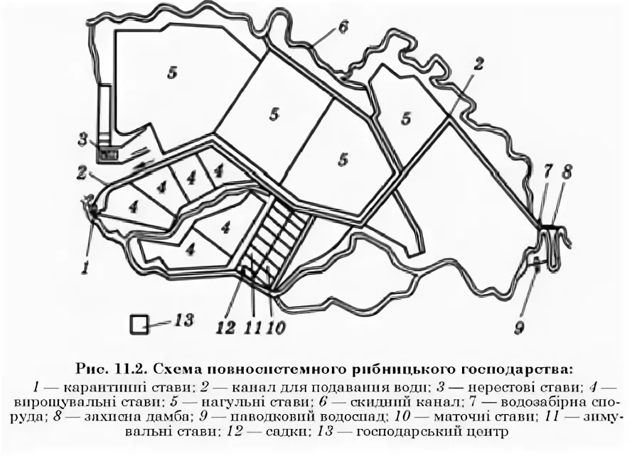 Устройство, и расположение прудов различных категорий, в рыбоводных хозяйствах
