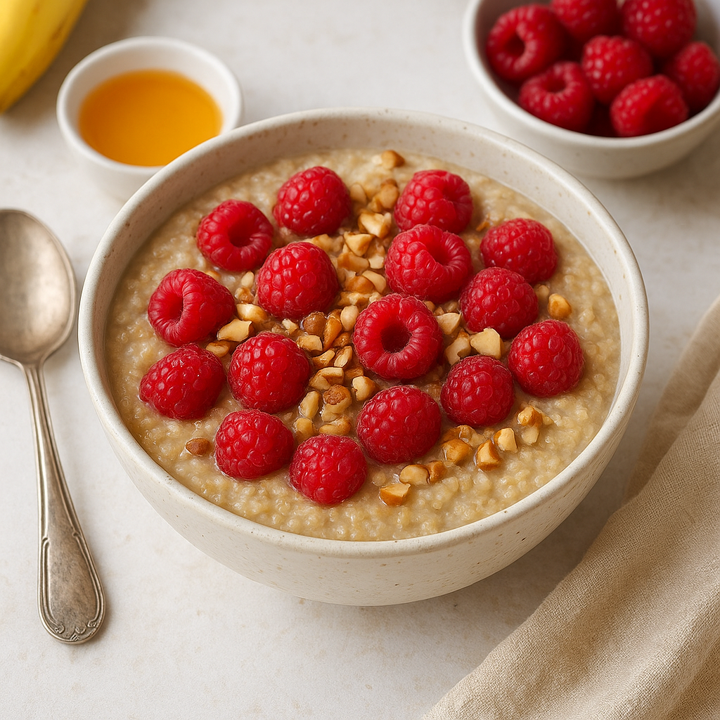 Дорогие друзья! Сегодня я хочу познакомить вас с удивительной кашей, которая станет настоящим открытием для вашего здоровья и вкусовых рецепторов. Киноа — это суперфуд, который диетологи рекомендуют именно в зрелом возрасте. А в сочетании с нежной банановой сладостью и яркой малиной получается блюдо, которое и полезно, и невероятно вкусно! Почему эта каша особенно полезна: Основные продукты: Шаг 1. Варим киноа — основа основ Совет: Киноа готова, когда зернышки становятся прозрачными, и появляется беленький "хвостик"! Шаг 2. Готовим бананово-молочную смесь Шаг 3. Финальные штрихи ✅ Легко усваивается — не вызывает тяжести в желудке