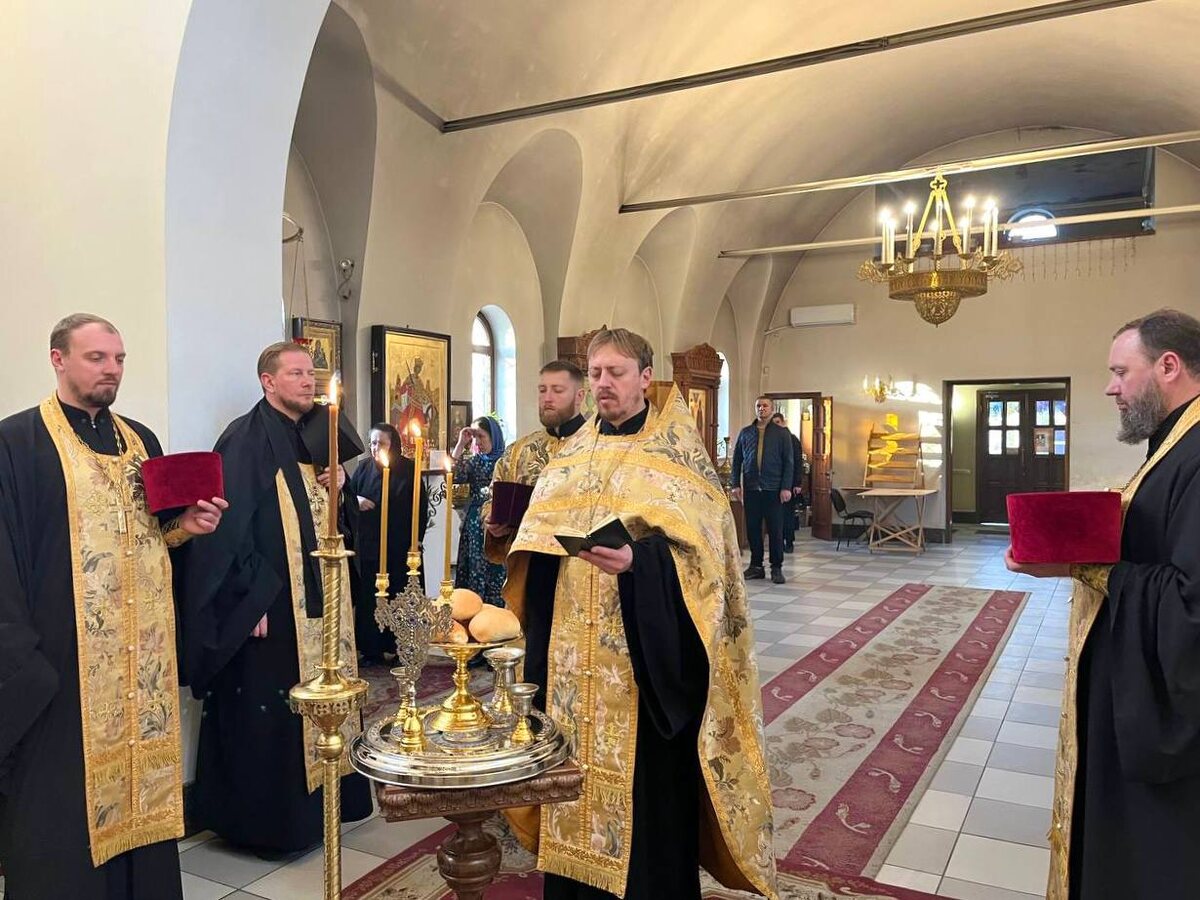 15 ноября, накануне Недели 23-й по Пятидесятнице, дня памяти святых мучеников Акепсима епископа, Иосифа пресвитера и Аифала диакона, по благословению наместника Вознесенского мужского монастыря архимандрита Иоанна (Сухина) протоиерей Артемий Кравченко возглавил Всенощное бдение на луганском Всехсвятском подворье.