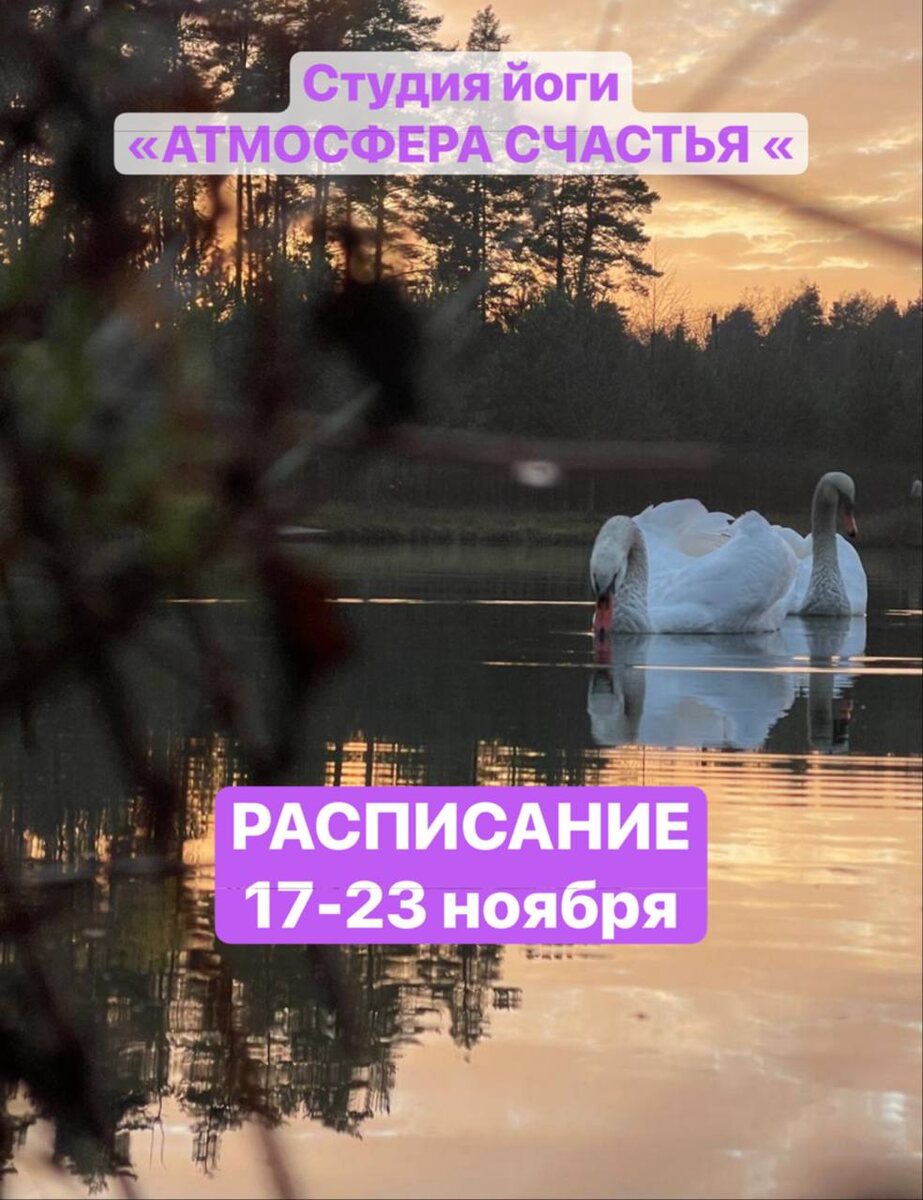 Привет, дорогие! 🙏 Каждый день дает нам возможности! Когда мы не используем их, то возможности становятся воспоминанием и даже сожалением! ❗️Но эти сожаления могут стать для нас в своем роде «учителями, когда мы учимся ВЫБИРАТЬ СЕБЯ! Проживая каждый день, у нас нет возможности его отрепетировать и прожить еще раз, но по-другому! 8️⃣Поэтому! 8️⃣ Каждый новый день - это шанс быть собой, не ожидая удобного случая, чтобы быть счастливым! Позвольте себе чувствовать! Любовь! Благодарность! Радость! Мы приглашаем вас в наше уютное пространство «Атмосфера Счастья» 🗓🗓🗓🗓🗓🗓🗓🗓 2️⃣2️⃣1️⃣1️⃣ Пн, Ср, Пт - 9.15 Кундалини йога, звукотерапия, МФР Вт, Чт 9.30 - утренний комплекс йоги. Любой уровень подготовки. 3️⃣6️⃣2️⃣6️⃣1️⃣ Пн, Чт - 20.00 Йога. Комплекс направлен на расслабление и снятие тревожности. 🔠🔠🔠🔠🔠🔠 Уже в эту пятницу, 21.11.25 мы едем на йогауикенд в ближайшее Подмосковье! В воскресенье практика отменяется! Мы находимся по адресу: 📍Марушкино, Солнечный бульвар, 3