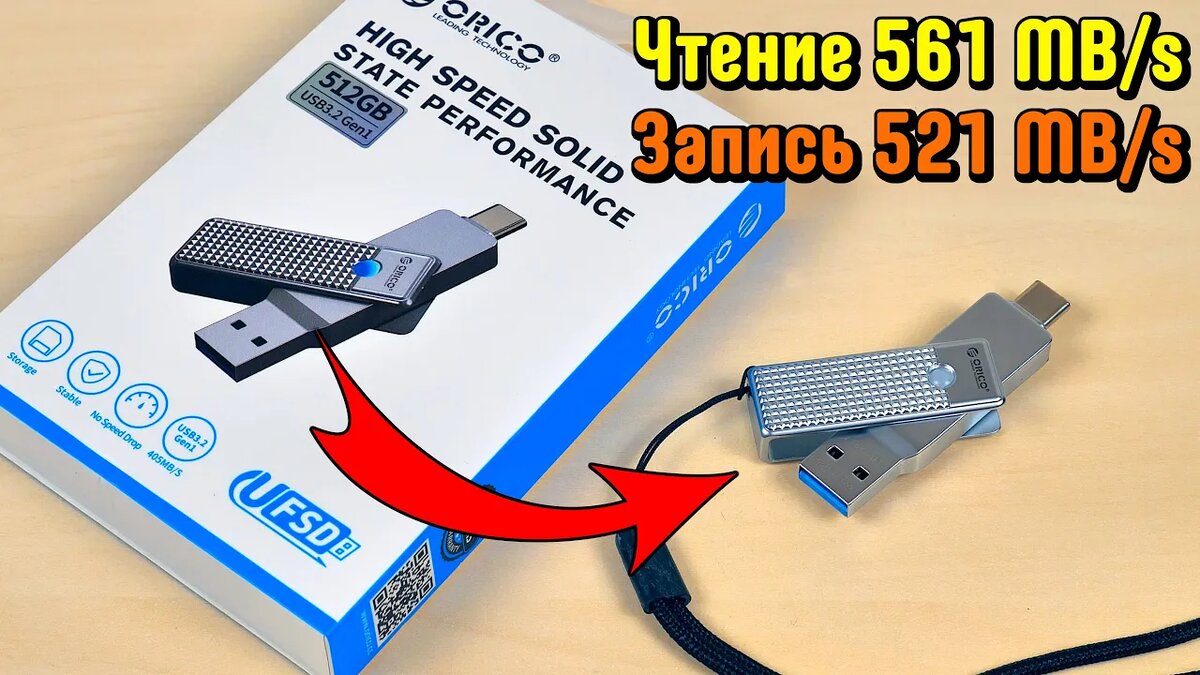 Накопитель Orico UFSD-LD показал себя с хорошей стороны, порадовал всем: начиная от материалов и качества изготовления и заканчивая скоростями. Скорость как чтения, так и записи соответствует заявленным показателям и даже превосходит их. Средняя скорость в проводнике на протяжении полного цикла теста тоже остаётся высокой, а не падает до нуля, как на некоторых других дешёвых накопителях. Устройство имеет два порта — USB-A и USB Type-C, работает в связке со смартфоном и может выступать в роли мультизагрузочной флешки. По большому счёту, это обычная флешка с двумя портами, но по своим характеристикам она ближе к SSD-накопителю, только в компактном, миниатюрном корпусе.