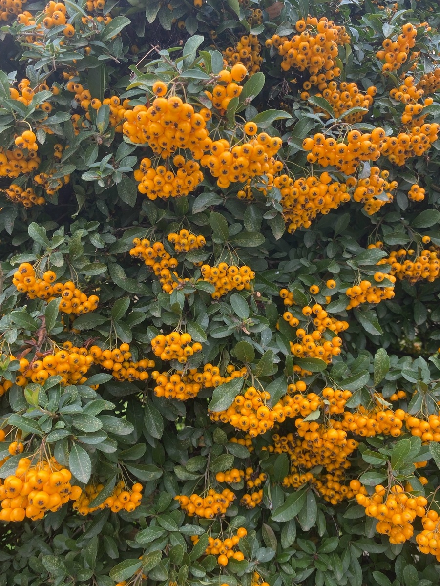 Пираканта - это декоративный, в любое время года выглядящий прекрасно, вечнозеленый кустарник . И не только зеленый, еще и вечно - желтый, вечно - оранжевый, вечно - красный. Ну как вечно, пока не съедят птицы или люди. Ягодки ее на вкус - невкусные, но и не ядовитые, уже хорошо. Птицам зимой выбирать не приходится, ну а некоторые люди, что дети малые, все в рот тащут. У меня возле дома растет лужайка дюшенеи, для красоты. И ту умудряются объесть, причем не всегда дети, чаще взрослые. Дети видимо мудрее или осторожнее. А уж пираканта, с таким обилием ягод конечно привлекает внимание. Не каждый может устоять и не попробовать их на вкус. Да и не ягоды это вовсе, а ЯБЛОКИ! Вот так, оказывается это растение раньше относили к семейству яблоневых, а позже видимо ботаники передумали, и отнесли к семейству спирейных. По виду и форме цветов очень похоже на спирею. Хотя пираканта и считается кустом, она способна отрастить веточки до 6-ти метров длиной. И оплести собой беседки, шпал
