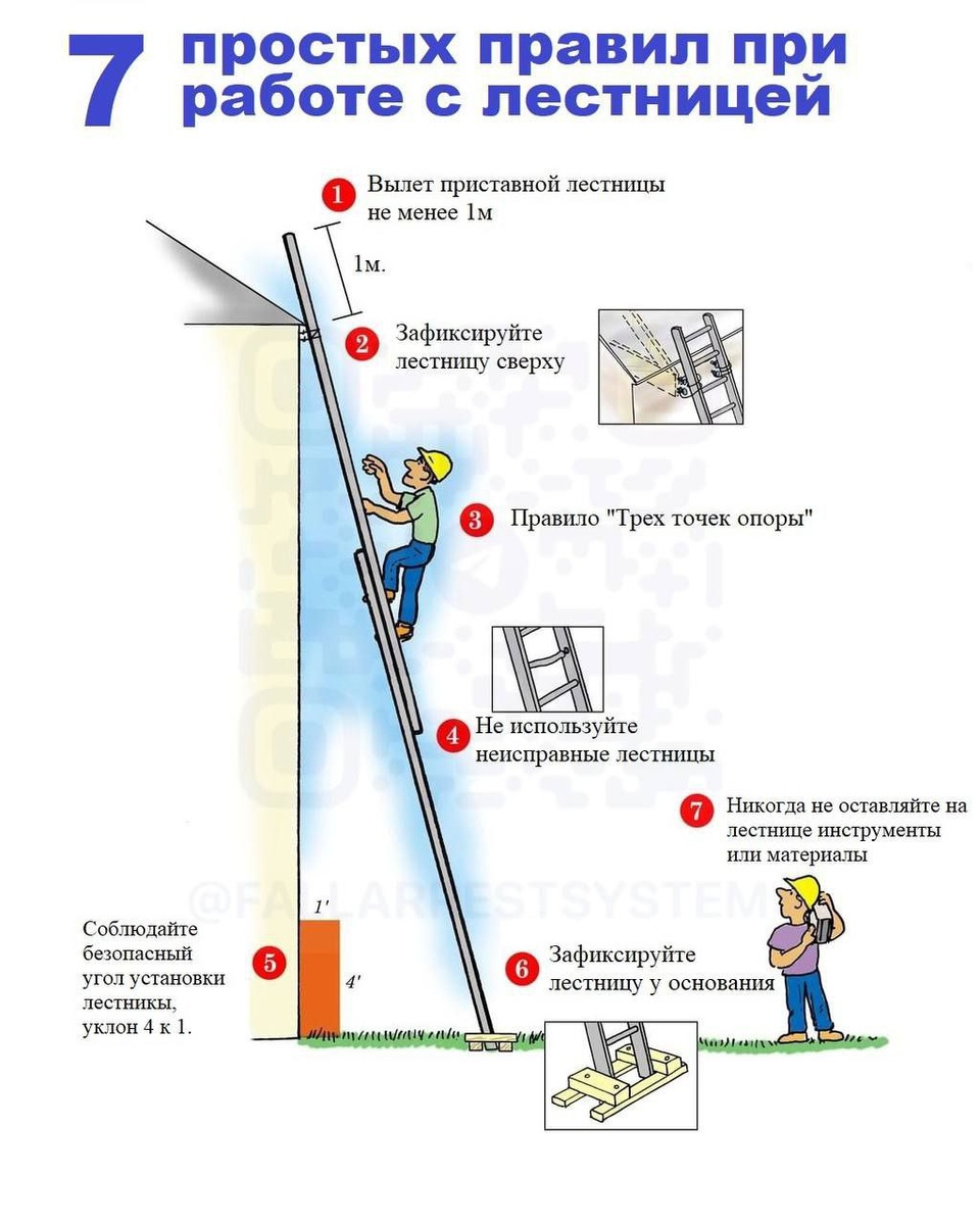 7 простых правил повышающих безопасность при использовании приставной лестницы.