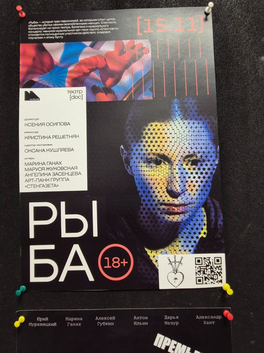Идя в театр.doc, ты знаешь, что готовиться нужно к честному разговору. Это место, как настоящая лаборатория правды, где документальные пьесы, вербатимы и реальные дневники становятся мощнейшим оружием против равнодушия. Их визитная карточка - это умение говорить на острые социальные темы без прикрас. И спектакль «Рыба» - не просто постановка, это самый горький и пронзительный крик, ведь здесь раскрывается тема домашнего насилия. Перед началом нас зрителей предупреждают, что в спектакле звучит громкая музыка и мат. «Можете выйти, если что, никто не обидится». Будничная интонация обманчива. Здесь самое сложное не физический дискомфорт, НЕТ, самое страшное ждет нас внутри. Самое страшное - это сюжет, который вскрывает твою душу так же беспощадно, как патологоанатом вскрывает тело. Потому что действие происходит именно там - в морге. Стерильное белое пространство, каталки, безликие тела в черных мешках, опознаваемые лишь по биркам на шее. И в этом месте последнего молчан