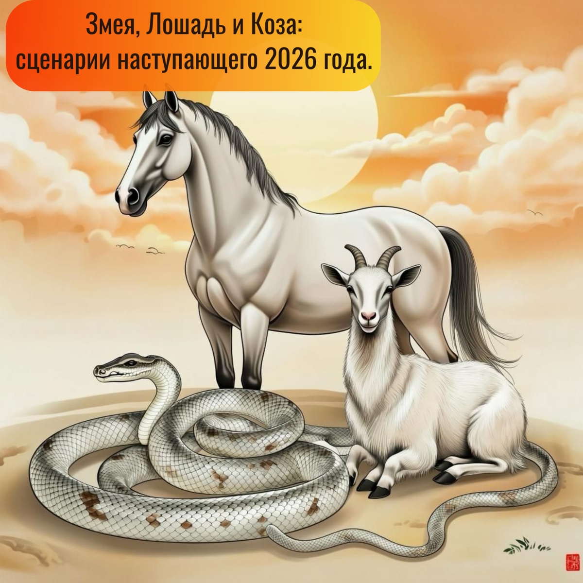 Друзья, рожденные в годы: Змея, Лошадь и Коза! Год 2026-й для вас — как долгий теплый день, полный возможностей, роста и уютных моментов. Каждый из вас получит свой уникальный солнечный лучик! Давайте заглянем в сценарий этого яркого года. ОЧАРОВАТЕЛЬНАЯ ЗМЕЯ: Год признания и мудрого баланса.