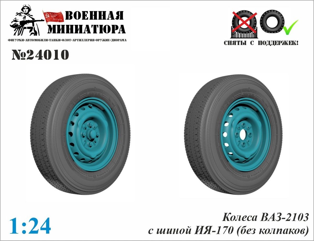 колеса с шинами ИЯ-170 для моделей ВАЗ-2101 и ВАЗ-2103 в масштабах 1/24 и 1/35.