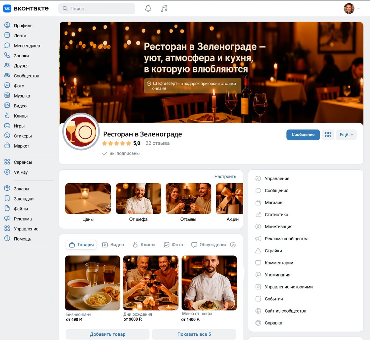 Продвижение ресторана через ВКонтакте в Зеленограде показывает, что даже при ограниченном бюджете можно получать стабильный поток гостей, если: