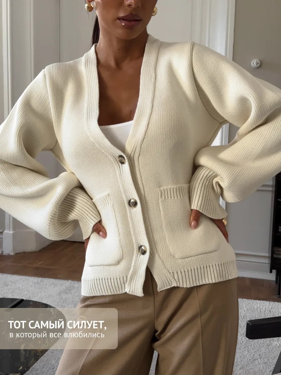 #Осень2025 #Кадиган Кардиган Вязанный укороченный кардиган на пуговицах. Отлично сочетается со всеми предметами гардероба. Классическая модель имеет застежку спереди, V-образный вырез с отсутствием воротника. ✍️ Артикул: 393443494 👌 Размеры: 40 - 44 👉Кардиган👈 _______ Как тебе❓ ❤️ / 💔 Топовый look с Wildberries 💶💵💴