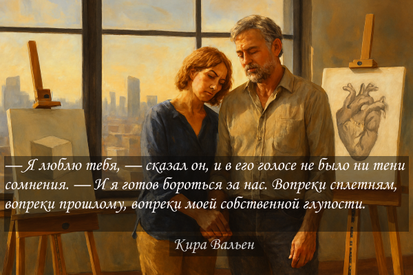 — Я люблю тебя, — сказал он, и в его голосе не было ни тени сомнения. — И я готов бороться за нас. Вопреки сплетням, вопреки прошлому, вопреки моей собственной глупости. Потому что без тебя… без тебя меня ждёт та самая тишина, от которой я бежал в студию. Тишина, в которой нет твоего смеха.