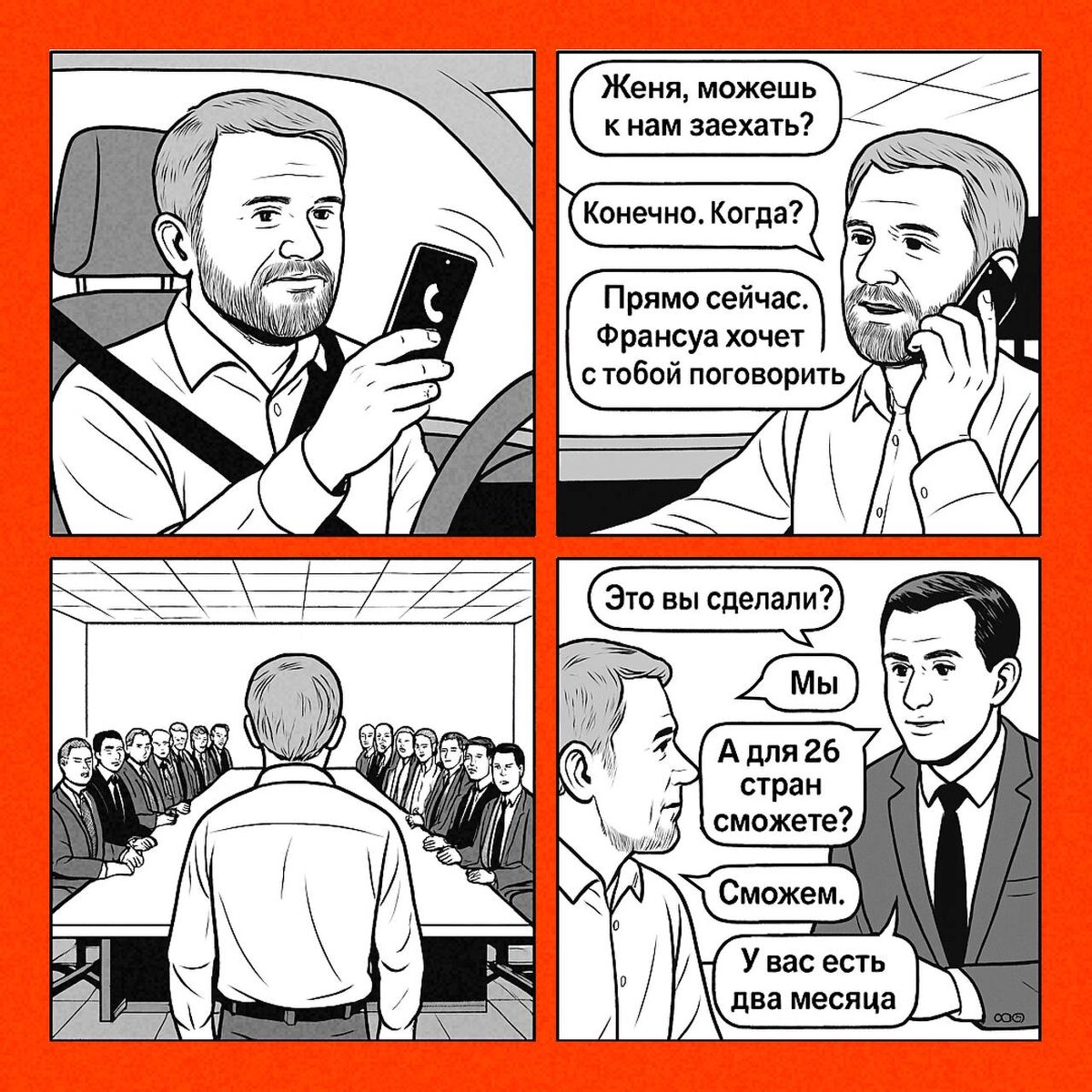 Я мчал на синем Смарте по Москве, когда зазвонил телефон: — Женя, можешь к нам заехать? — Конечно. Когда? — Прямо сейчас. Франсуа хочет с тобой поговорить. Ого! Разворачиваюсь. Международная фарм-компания. Я вхожу в офис — переговорка. За столами сидят 15 европейцев в черных костюмах. Главный достает планшет: — Это вы сделали? — Мы. — А для 26 стран сможете? — Сможем. — У вас два месяца. А началось все с двойного визита. Мед представитель проводил встречу с важным врачом — лидером мнения, не очень настроенным на диалог. Франсуа — рядом. Русский не понимает, но по лицам видит: мощное напряжение. Медпред достает планшет, запускает нашу программу - CLM, идет по скрипту. И случается чудо: – доктор заинтересовалась, – потом увлеклась, – потом забрала планшет и сама повела визит. Через два часа Франсуа уже ждал меня в офисе. А я искал разворот на Ленинском. ➡ Потом был контракт. ➡ Европейская продуктовая команда приехала в Москву, мы вместе делали контент. ➡ Несколько лет мы поставляли софт