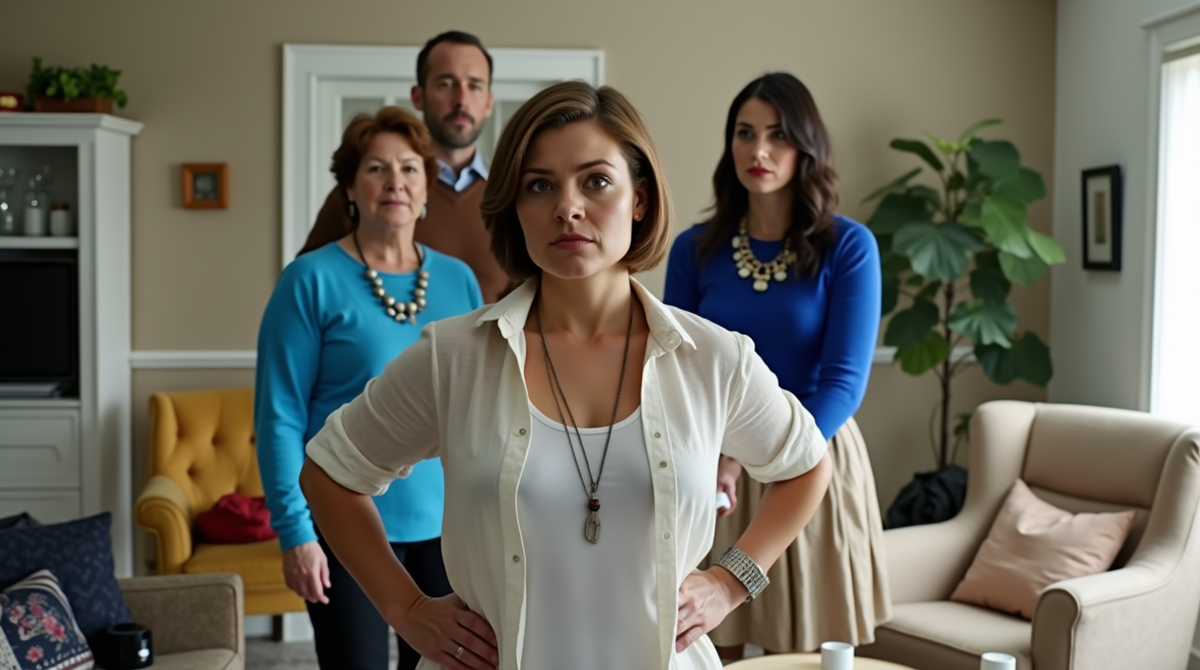 Свекровь выпрямилась на диване, её седеющие волосы, собранные в аккуратный пучок, блеснули в свете торшера. Она была женщиной старой закалки – крепкой, с руками, привыкшими к тяжёлой работе на даче, и взглядом, который мог пригвоздить к месту. Рядом с ней сидела Ольга, сестра Дмитрия, нервно теребя край шарфа, а её муж, Сергей, уткнулся в телефон, делая вид, что не слышит. Подростки – сын Ольги, шестнадцатилетний Артём, и дочь, четырнадцатилетняя Катя – переглядывались, хихикая над чем-то в своих гаджетах.