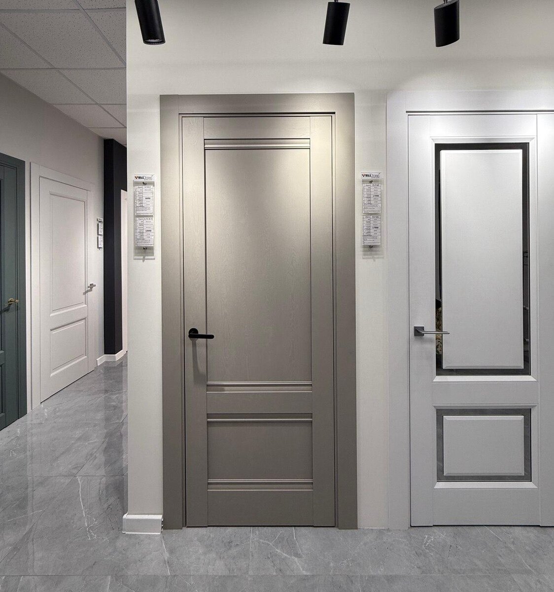 Некоторые двери словно становятся частью интерьера с первого взгляда — без попыток выделиться, без навязчивости, просто благодаря своей правильной, благородной пластике. Именно такое впечатление производит модель Alto 20 2P в пепельно-сером оттенке, которую вы видите на фото. Здесь важно всё: и сбалансированная геометрия, и мягкая текстура древесных волокон, и спокойный серый тон, который подчёркивает форму, но не перетягивает внимание. Поверхность играет полутонами — от тёплого серого до лёгкого дымчатого — и за счёт этого дверь выглядит дороже, чем предполагаешь поначалу. Чёрная фурнитура становится тонким контрастом. Она не «кричит», не дробит полотно, а собирает композицию в единый, продуманный образ. Такое сочетание особенно хорошо работает в двух случаях: