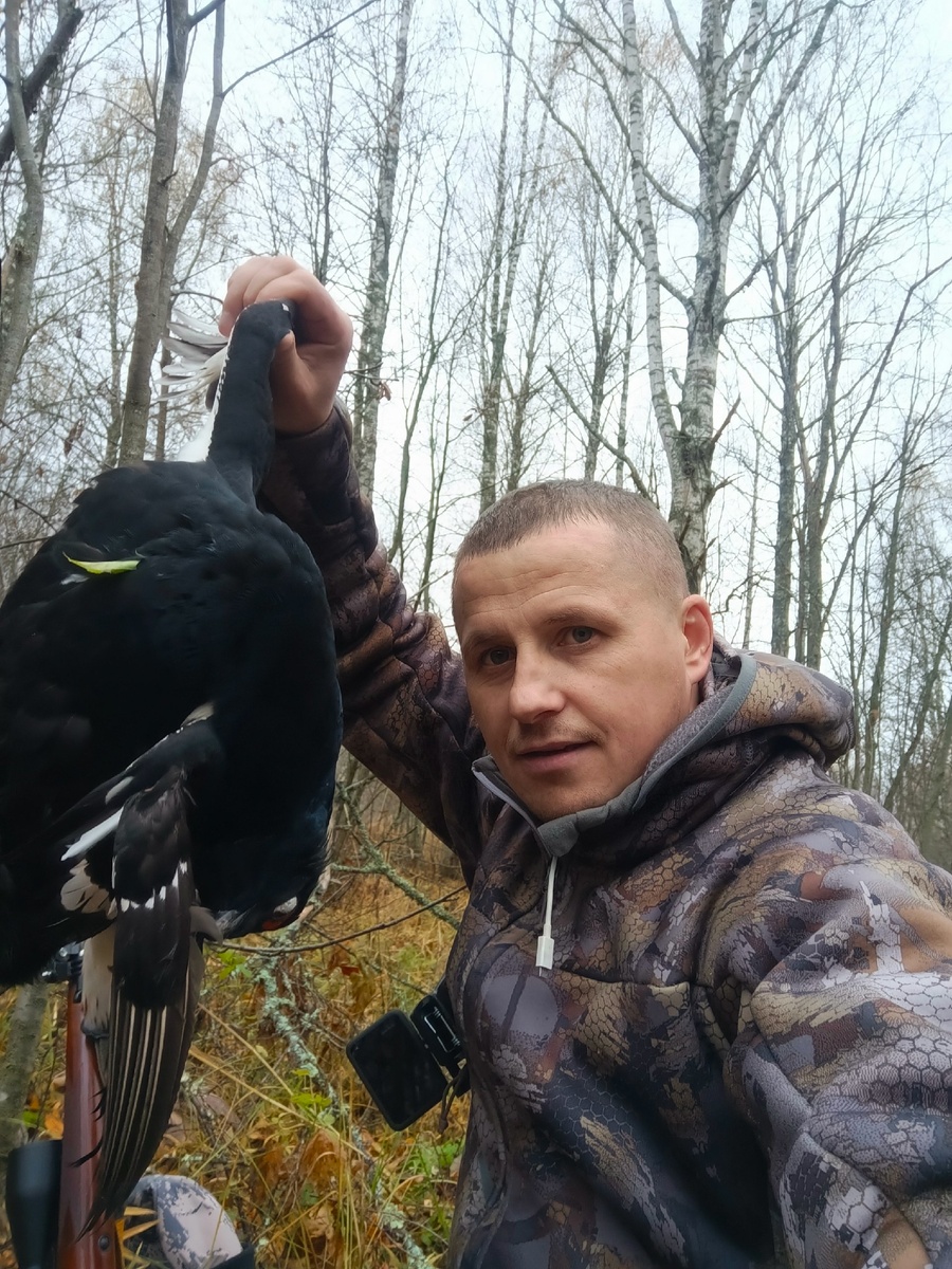 Всем привет, добыл шикарнейшего косача, небесной красоты!!! Тетеревов искал с раннего утра, заметив их на кормёжке, стал подходить. Местность почти открытая, деревьев мало, листьев нет, не смотря на все мои старания и маскировку, косачи не подпустили и на пару сотен метров(( Не зря же говорят, что если ты видишь тетерева, значит он тебя видит уже давно). Ходил за ними как дурак, вспугивал несколько раз! В итоге мне удалось разогнать большую стаю, а к отдельным группам как известно подкрасться проще. Подойдя примерно на сто с небольшим метров, я не стал искушать судьбу, сделал поправки и произвёл выстрел. Косач остался сидеть, было видно, что он вот-вот упадёт, да и шлепок от пули говорил о попадании, но эти птицы очень крепки на рану, может спланировать в заросли так, что не найдешь! Сделал контрольный, черныш упал тряпкой прямо под берёзу. Пока выбирался, сильно затемнало, увидев зарево над лесом, перепугался, думал пожар в деревне, оказалось дровосеки сжигали мусор в делянке. Трофей
