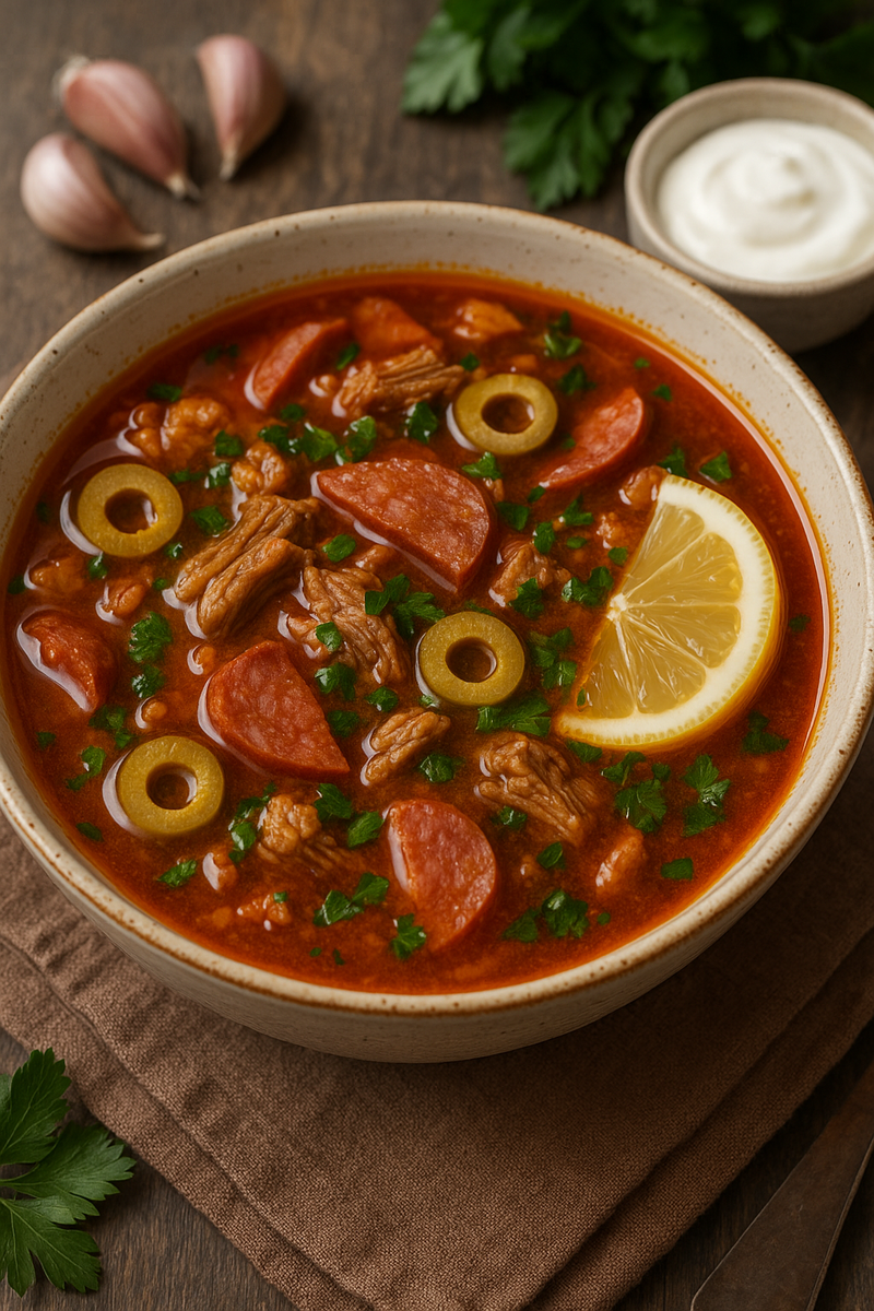 Солянка по-грузински — суп, который легко сделать даже новичку, если понимать последовательность и знать пару хитростей. Он получается густым, насыщенным и очень домашним.
