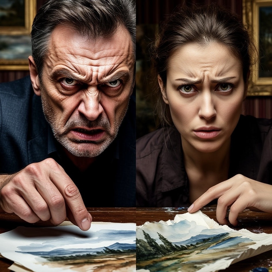 «Ева, – его голос, обычно такой бархатный на аукционах, теперь был полон яда. – Твоя живопись – мазня! Ну абсолютная бездарь! Ты что, не видишь?! Это же просто детский лепет! Посмотри на настоящее искусство! На вот этих мастеров! – Он широким жестом указал на полотна, висящие по всему дому: Рембрандт, Моне, Айвазовский – по его словам. – Вот это – талант! А ты… ты просто тратишь время! Твоё дело – следить за домом, а не пачкать бумагу! Стыдно показывать такое! Иди, займись чем-нибудь полезным!» Он снова указал на свой, как он считал, подлинный шедевр, затем демонстративно отвернулся.