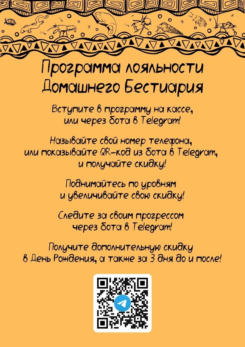 Срываем покров тайны с нашей программы лояльности! После крупной покупки (от 5 тысяч), вам предложат (а если забудут, то напомните пожалуйста об этом человеку за кассой) присоединиться к нашей программе лояльности с накопительной системой скидок. Скидка зависит от суммы покупок за всё время: От 0 до 5000 - 1% От 5000 до 15000 - 3% От 15000 до 35000 - 4% От 35000 до 70000 - 5% От 70000 до 100000 - 7% От 100000 до 150000 - 8% От 150000 до 200000 - 9% Свыше 200000 - 10% Скидка в честь дня рождения (действует в день рождения а также три дня до и три дня после) - 10% (не суммируется с накопительной скидкой, а заменяет её) Правила Программы лояльности Политика конфиденциальности Согласие на обработку персональных данных Бот в Telegram
