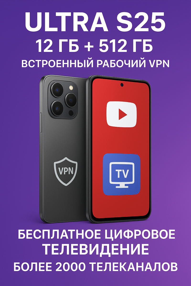 Хотите мощный телефон, который не просто работает, а реально решает все задачи? Ultra S25 12 ГБ оперативной памяти + 512 ГБ встроенного хранилища – это именно тот аппарат, который сейчас выбирают тысячи людей. В устройство уже встроены рабочие средства обхода, которые работают сразу из коробки. Никаких дополнительных настроек – включил и пользуешься. Смотрите YouTube в максимальном качестве без рекламы и блокировок, в любом регионе. А главное – бесплатное цифровое телевидение более 2000 каналов уже предустановлено и работает стабильно. Фильмы, спорт, новости, детские каналы – всё в отличном качестве и без абонентской платы. Один заряд – и телефон спокойно живёт 2–3 дня при активном использовании. Смотрите сериалы, играйте, общайтесь – батарея не подведёт. 12 ГБ оперативной памяти – любое приложение летает. 512 ГБ встроенной – хватит на тысячи фильмов, фото и приложений. Мощный процессор тянет самые требовательные игры и многозадачность без тормозов. Если вы устали от обычных смартфоно