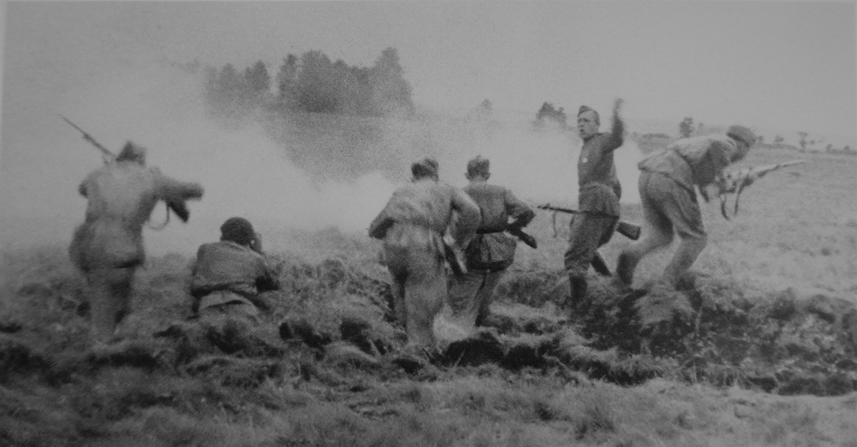 Здравствуйте, уважаемые читатели! Сегодня я хочу рассказать о действиях подразделений 37-й стрелковой дивизии в районе населённого пункта Михалкино, расположенного на реке Редья. Линия фронта в данном случае проходила в неподходящем месте для наших войск и стала итогом зимнего наступления. Враг находился в лесном массиве и мог незаметно накапливать силы, а вот наш передний край хорошо просматривался немцами и, в свою очередь, хорошо обстреливался, что вело к потерям. Поэтому было решено сбросить врага с насиженных мест. Операции предшествовала тщательная подготовка, в ходе которой был изучен передний край обороны фашистов, выявлены огневые точки, препятствия и т. д. Сапёры, не смотря на то, что местность просматривалась, незаметно сделали проходы через минные поля и заграждения. И вот в 2 часа 4 мая 1943 года батальоны под командованием капитанов Бушева и Салихова после артподготовки стремительно атаковали врага и выбили немцев из первой линии траншей. Сигналом к атаке был орудийн
