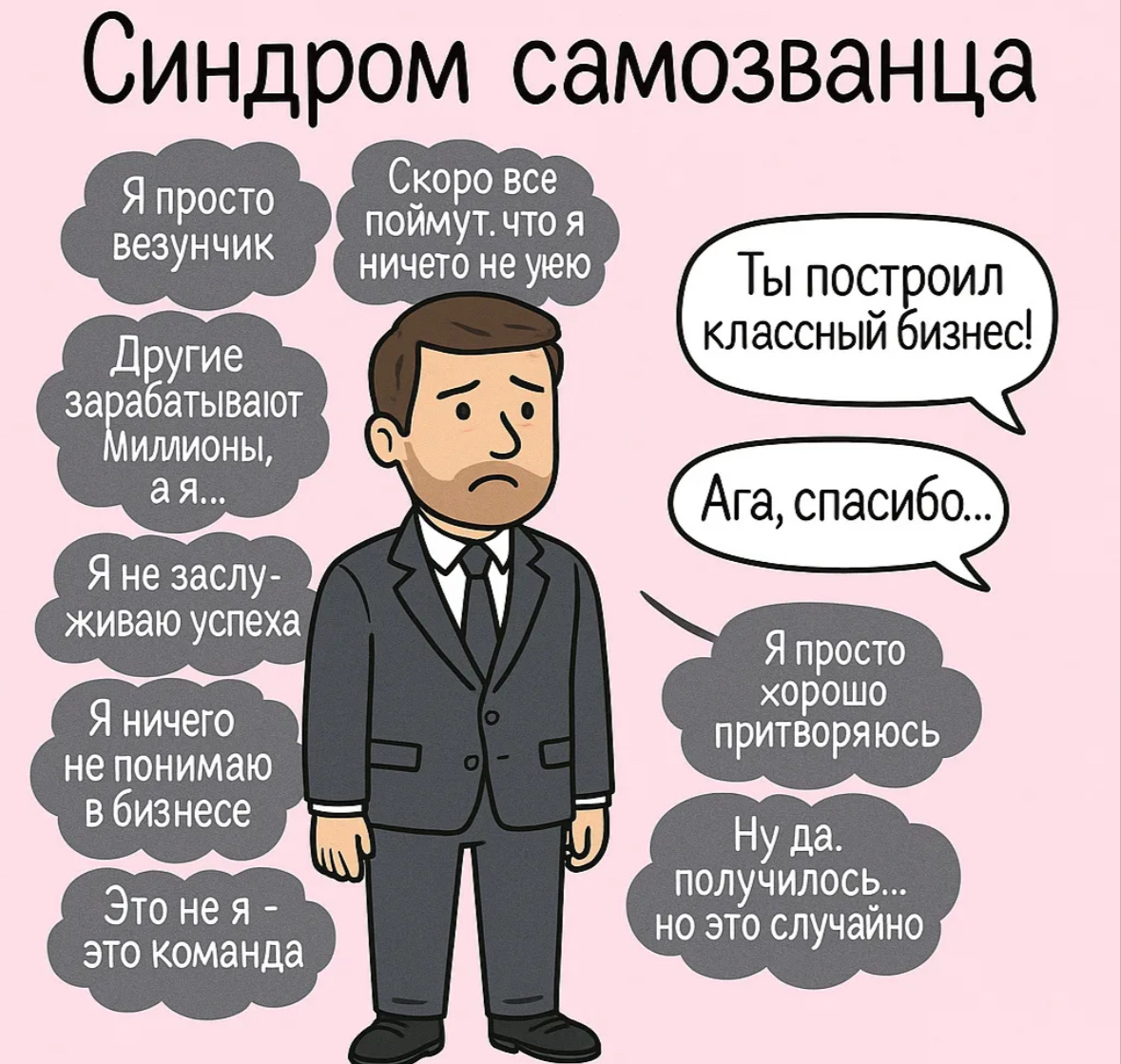 Знакомо чувство, когда вы просыпаетесь в 3 утра и думаете: "Я вообще понимаю, что делаю?" А на утро надеваете маску уверенного руководителя и делаете вид, что всё под контролем. Я проходил это с моими клиентами. 5 лет назад мой первый клиент был на грани закрытия, потому что он боялся признаться себе: я не знаю, как управлять бизнесом. Как синдром самозванца убивает ваш бизнес: 1. "Паралич решений" Вы неделями не можете выбрать нового поставщика, боитесь поменять меню, откладываете увольнение токсичного сотрудника. Каждое решение кажется вам фатальной ошибкой. Психологический портрет: · 78% владельцев малого бизнеса испытывают "синдром самозванца" · 62% откладывают важные решения из-за страха ошибки · Только 2-5% обращаются за помощью 1. "Микроменеджмент как защита" Вы контролируете каждую мелочь: сколько грамм сыра положили в салат, кто и когда ходил на перекур. Это не управление — это попытка убедить себя, что вы всё держите под контролем. 2. "Одержимость чужим мнением"