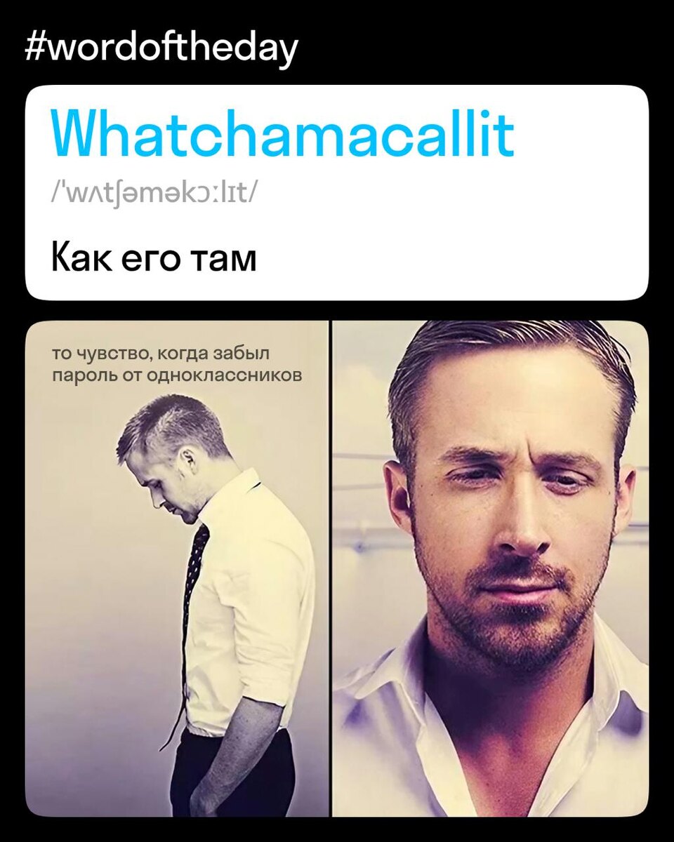 Когда слово вертится на языке, но его никак не получается вспомнить, можно просто использовать whatchamacallit. Такой вот аналог наших «ну, это, как его там» и «эта штука». А вообще, это не просто слово, а сокращённая версия целой фразы — «What you may call it?» (Как это можно назвать?). В английском такие слова называют placeholder phrases — это термины-заполнители, которые используются вместо забытых, неизвестных или неподходящих слов. Например: ▫️Can you pass me the… whatchamacallit… the thing you use to open bottles? ▫️Можешь передать мне… ну, как его там… штуку, которой открывают бутылки? 🎁 Ещё 1000 самых употребляемых английских слов в одном файле: https://go.skyeng.ru/16words11tg 🎁 Курс «+1 уровень английского»: https://go.skyeng.ru/16levelup11tg