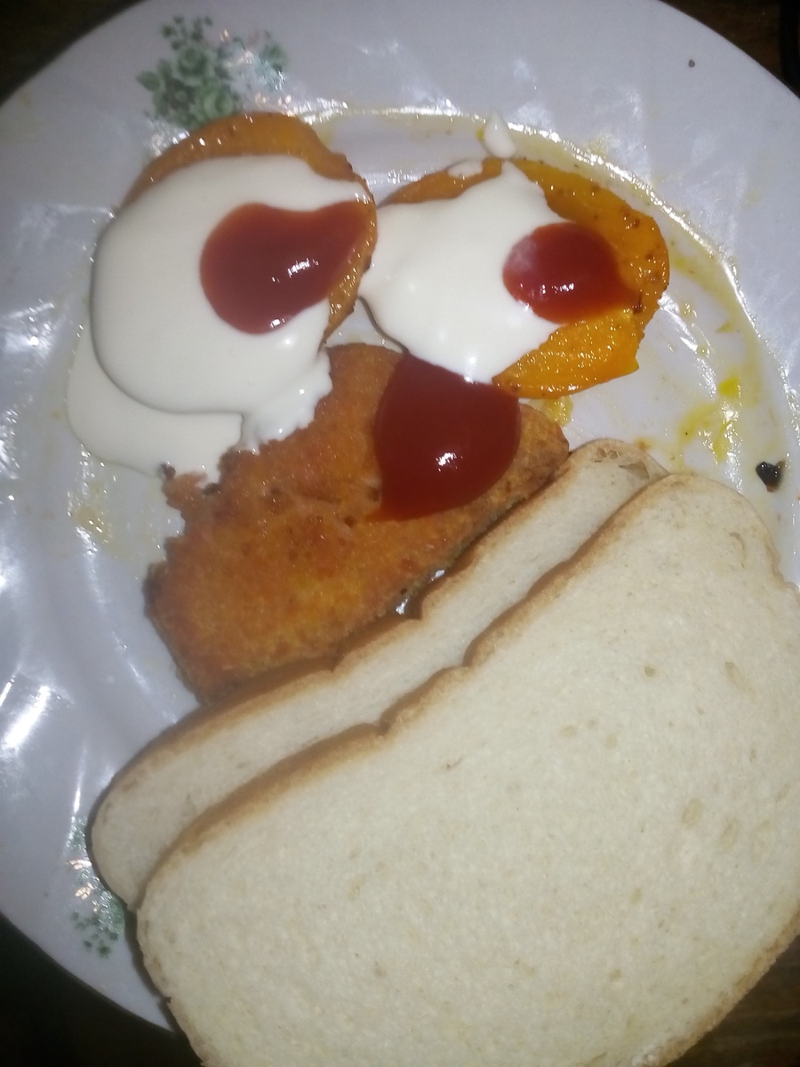 Что такое "анекдот" знают все. Но. Также анекдотом в разговорной речи могут называть случай из жизни необычного характера, который может быть и весёлым, и печальным Воооотттт.... Когда дети были еще маленькие, я приготовил для них какое-то кушанье. И вот , я такой гордый собой, спрашиваю, мол, что это? Интрига, ага. И Вика отвечает: - Гадость. Я, с надеждой: - А на что похоже? И Вика, подумав, выносит вердикт: - На гадость. Это была преамбула. Купил на пробу три "Лососевых конвертика". Запёк в духовке... Н-да. Вспомнились слова дочки. Подумал-подумал... И обжарил. Не, так-то получше... Но... Такие конвертики нам не нужны... Желтый помидор, майонез, кетчуп, хлеб, лососевый конвертик в панировке: