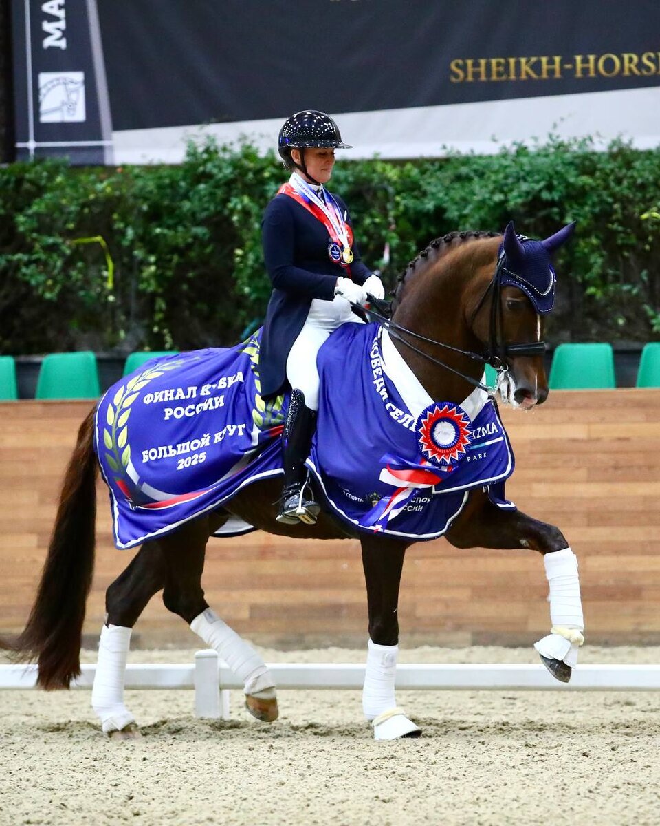 🐴 Наталья Шадрина – победительница Финала Кубка России по выездке (Большой круг) 15 и 16 ноября в подмосковном конноспортивном комплексе Maxima Park прошёл Финал Кубка России по выездке. В течение двух насыщенных соревновательных дней семь сильнейших спортивных пар страны боролись за главный трофей зимнего сезона. В Большом Призе победу одержала представительница Ярославской области Наталья Шадрина в паре с Индиго, показав результат 69,826%. В КЮРе Большого Приза Наталья Шадрина вновь стала лучшей: её произвольная программа с Индиго получила от судей 73,460%. Второе место заняла представительница Курской области Александра Карташова на Гламур Гёрл с результатом 70,975%. На третью ступень пьедестала поднялись Ирина Горбачёва и Фламинго, выступающие за Ленинградскую область — 69,985%. По итогам двух дней соревнований в абсолютном первенстве победу одержала Наталья Шадрина. Второе место заняла Александра Карташова, а тройку сильнейших замкнула Ирина Горбачёва. В этом сезоне Кубок Ро