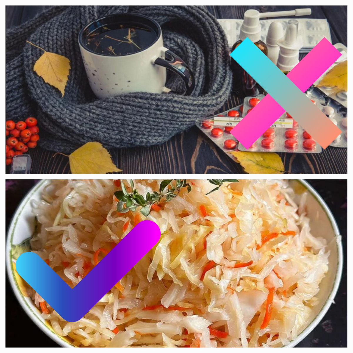 В квашеной капусте содержится огромное количество лактобактерий. Они продуцируют бета-глобулины, особые белки, защищающие организм от болезней, вызываемых вирусами и бактериями. Так что квашеную капусту можно назвать иммуностимулятором: всего 100 г этого продукта в день повысят сопротивляемость не только гриппу и ОРВИ, но и коронавирусной инфекции. Конечно, лактобактерии могут попасть в капусту только из специальной натуральной закваски, и надёжнее всего квасить капусту самим. Так как, если делать капусту с уксусом, как многие производители готовят для супермаркетов, то полезных бактерий в ней не будет.