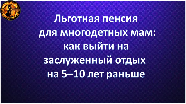 - Пятеро и более детей — в 50 лет (на 10 лет раньше).