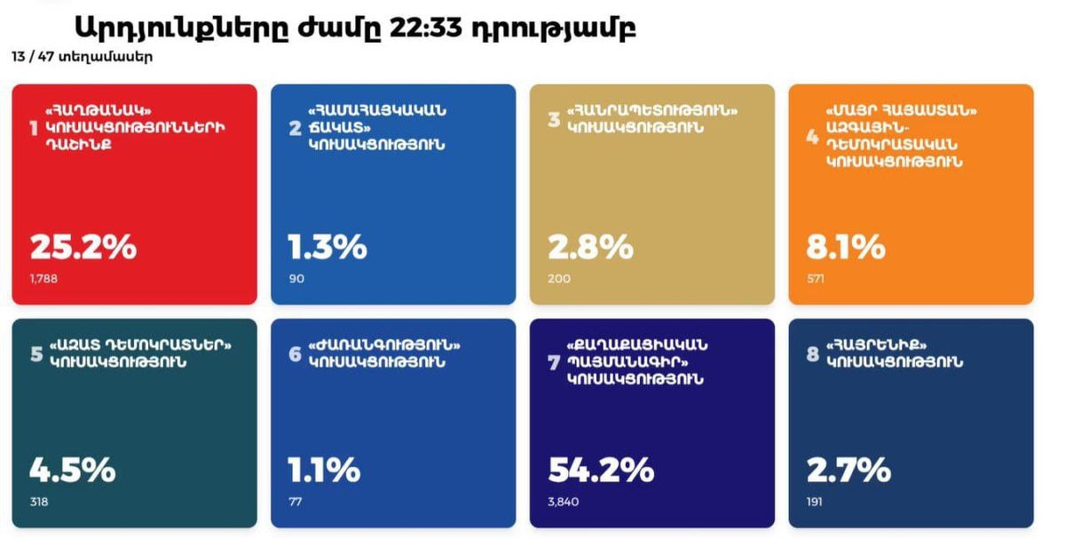 Վաղարշապատի 13 տեղամասից ստացված նախնական արդյունքներ