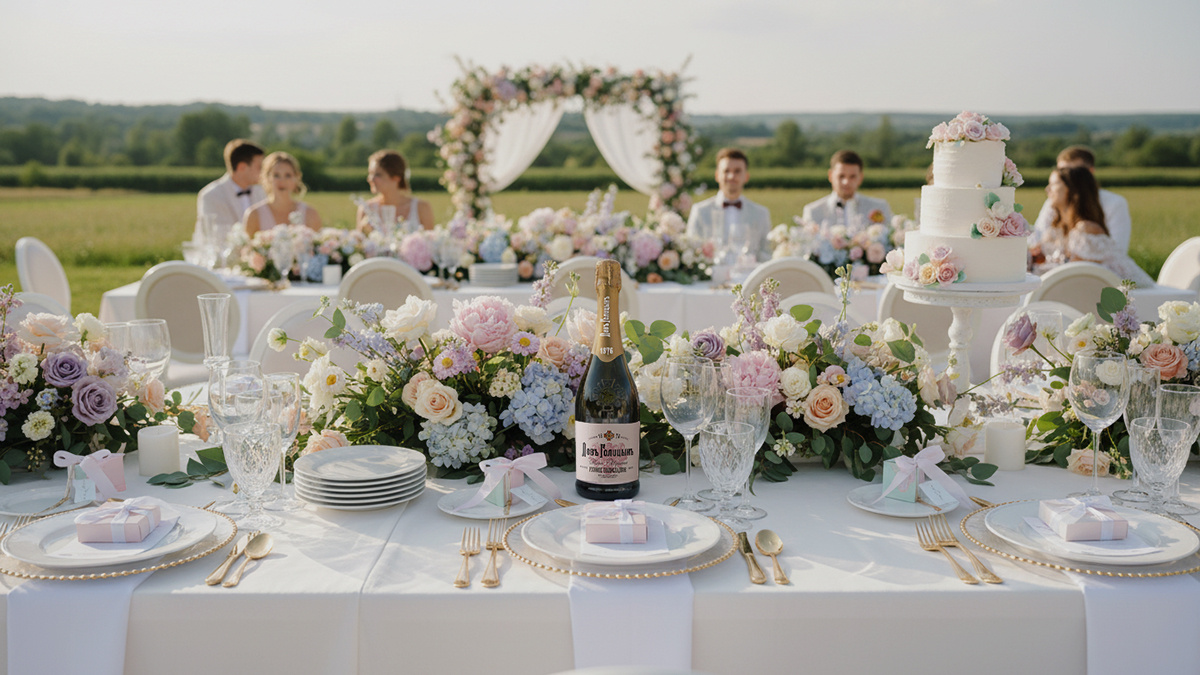 Идеальны свежие вина с нотами выпечки (Extra Brut или Brut), либо классика банкета - полусухое игристое. Дневное торжество