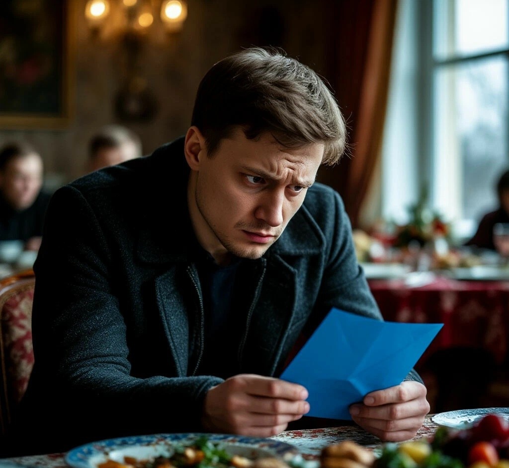Чтобы отвлечься, он потянулся к верхней полке шкафа, где мама хранила разные важные бумаги: свидетельства, трудовые книжки, гарантии на технику. Его пальцы наткнулись на плотный конверт из синей бумаги. Он не придал этому значения, собираясь просто переложить его в сторону, но конверт был не заклеен, и из него выскользнул лист.