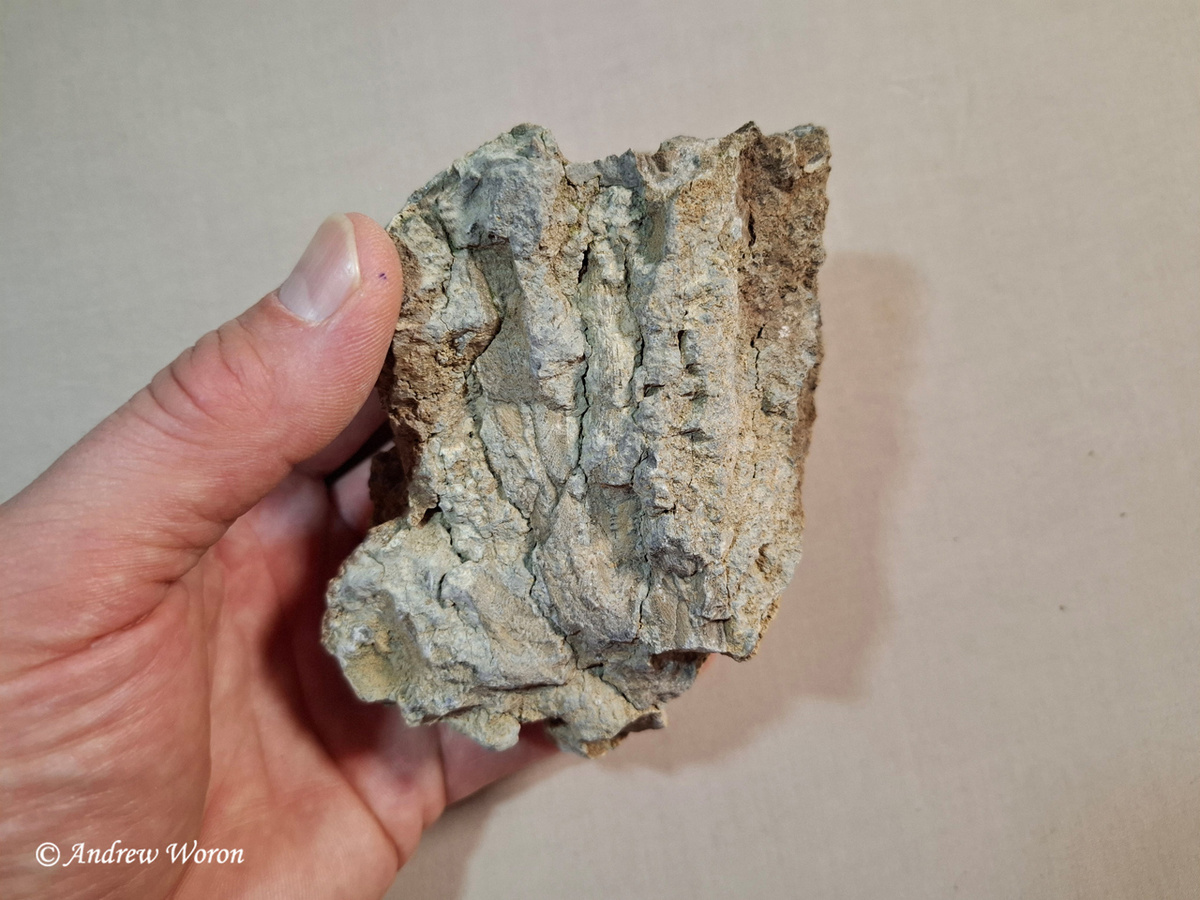 Уже больше двух недель прошло с момента, как я вернулся из Крымского отпуска, но всё никак не доходили руки перебрать находки, распределить по местами поиска и видам древностей, сфотографировать и выложить сюда. Но описания отпуска заканчиваются, так что пора… Найдено много всего, но большая часть далеко не первого сорта. Все самое «кондиционное» оставлю себе и уже начал оформлять новую полку с представителями древнего морского дна Юрского периода. Остальное же будет пока в запасниках, а после подарено или отправлено по обмену кому-то. Хотя пять кораллов Ругоза уже уехали в Воронеж и Брянск. Все окрестные горы возле Судака и Нового Света – это древние коралловые рифы, и самый известный из них – мыс Алчак. Он же природный заказник. И именно он добавил в мою коллекцию больше всего древностей. А теперь по порядку – фото и описание. После встречи рассвета на вершине горы Сокол, когда я уже спускался вниз, на одной из каменистых осыпей мне приметилась кальцитовая жила в камне. А когда я нач