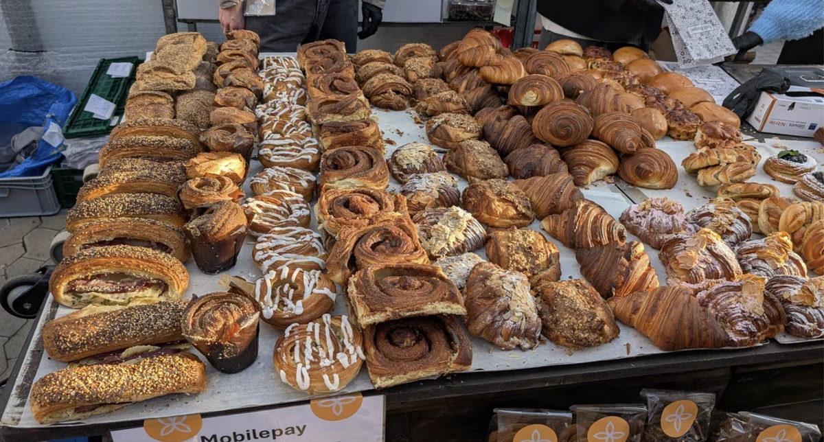 Рождественские рынки- традиция Европы, и Дания тут в первых рядах. Рынки бывают постоянные, которые работают каждый день до рождества, и рынки воскресного дня, которые открываются по выходным. Вот такой я обнаружила в большом магазине домашних растений, когда вышла на прогулку и обнаружила, что вся дорога, которая обычно бывает пуста, с обеих сторон уставлена автомобилями. Вход оказался платным, ну да ладно, внесла я свою долю в рождественскую суматоху! Внутри павильона приятно пахло сладкой выпечкой: Это отделение еды. Здесь торгуют своей продукцией мелкие предприниматели. В Дании. популярны напитки из яблок - яблочный сидр и соки с различными примесями для создания вкуса. Ну и шнабс, конечно, как же без него! Кстати, датчане именно со шнабса начинают рождественский обед, так как считается, что он очень подходит к маринованой сельди. Конечно, дают попробовать, ведь для произвдителей это и реклама тоже. Вкуснейшая датская свининка: И шкварочки тоже здесь. Прилавки заняты рукод
