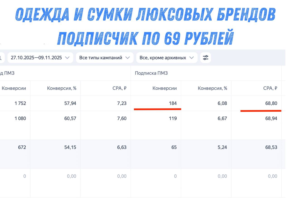 Получаем целевых подписчиков по 69 рублей через таргет. Одежда и сумки люксовых брендов, трафик на закрытый telegram канал