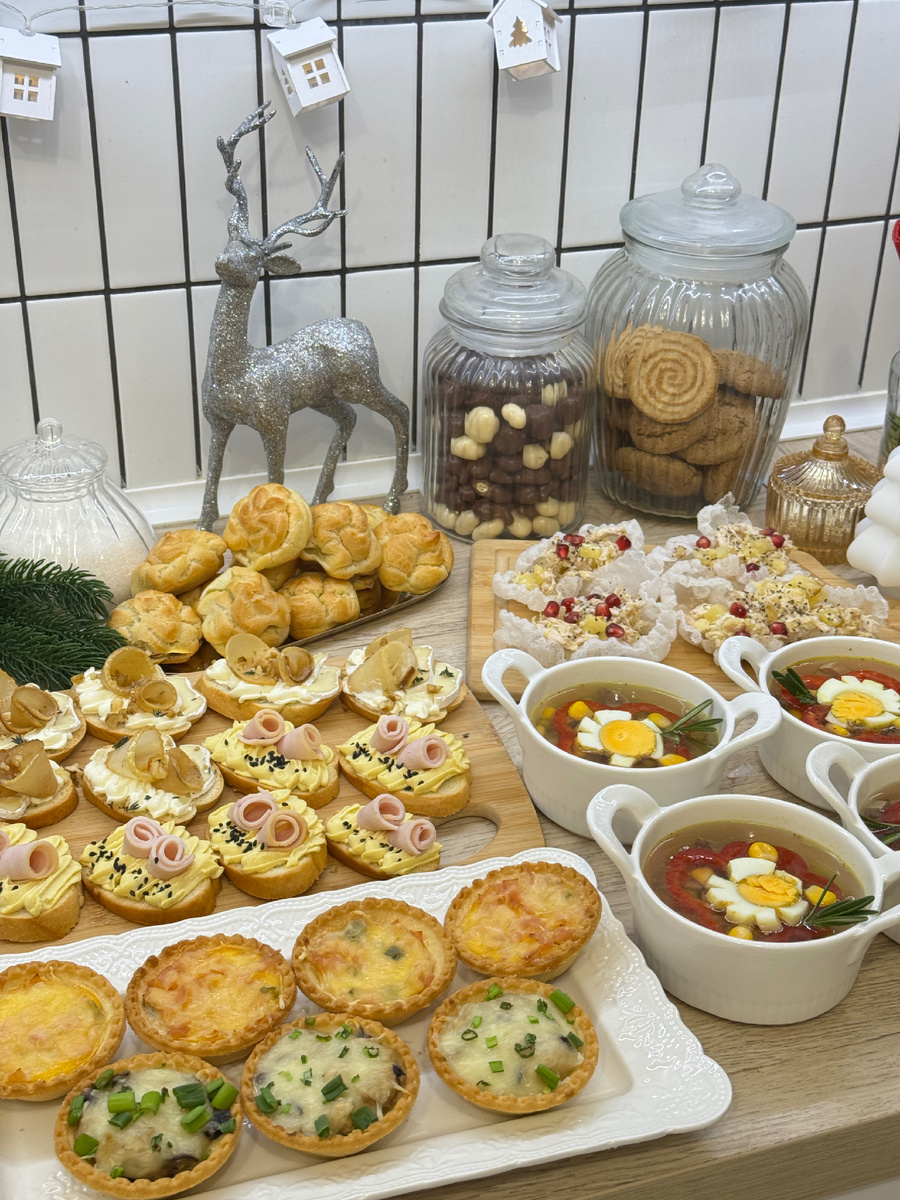 Не могу не поделиться😅 Было отснято: ▫️Медовик без раскатки ▫️7 закусок для недельного марафона закусок ▫️Салат "Шапка Мономаха" ▫️Заливное ▫️Салат Тбилиси ▫️Печеночный паштет ▫️Профитроли ▫️Салат с курицей и ананасом Финальный кадр был сделан ровно в полночь. Так что встретили Новый день, как Новый год, среди тарелок, ингредиентов и фототехники. А наутро... О, наутро мы проснулись в реальности 1 января, где главной задачей было не сесть на диету, а доесть это великолепие. 🤣 И вот, стоя у холодильника, с тарелкой, на которой мирно уживались «Тбилиси», закуски, "Шапка Мономаха" и профитроли, я задалась извечным вопросом: а нафига люди так наготавливают? Серьезно!😱 Несколько лет подряд мы с семьей отмечаем Новый год с парой салатов и вкусной сырной и мясной нарезкой. И знаете? Это гениально. На ночь никто не хочет горячего, а 1 января я просто достаю из морозилки заранее приготовленные полуфабрикаты и через 20 минут на столе свежая, ароматная еда😋, а не вчерашний майонезный марафон.